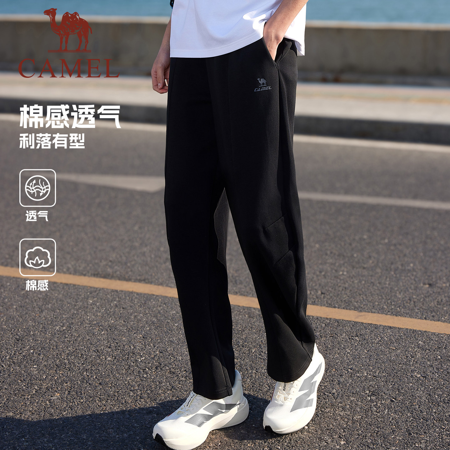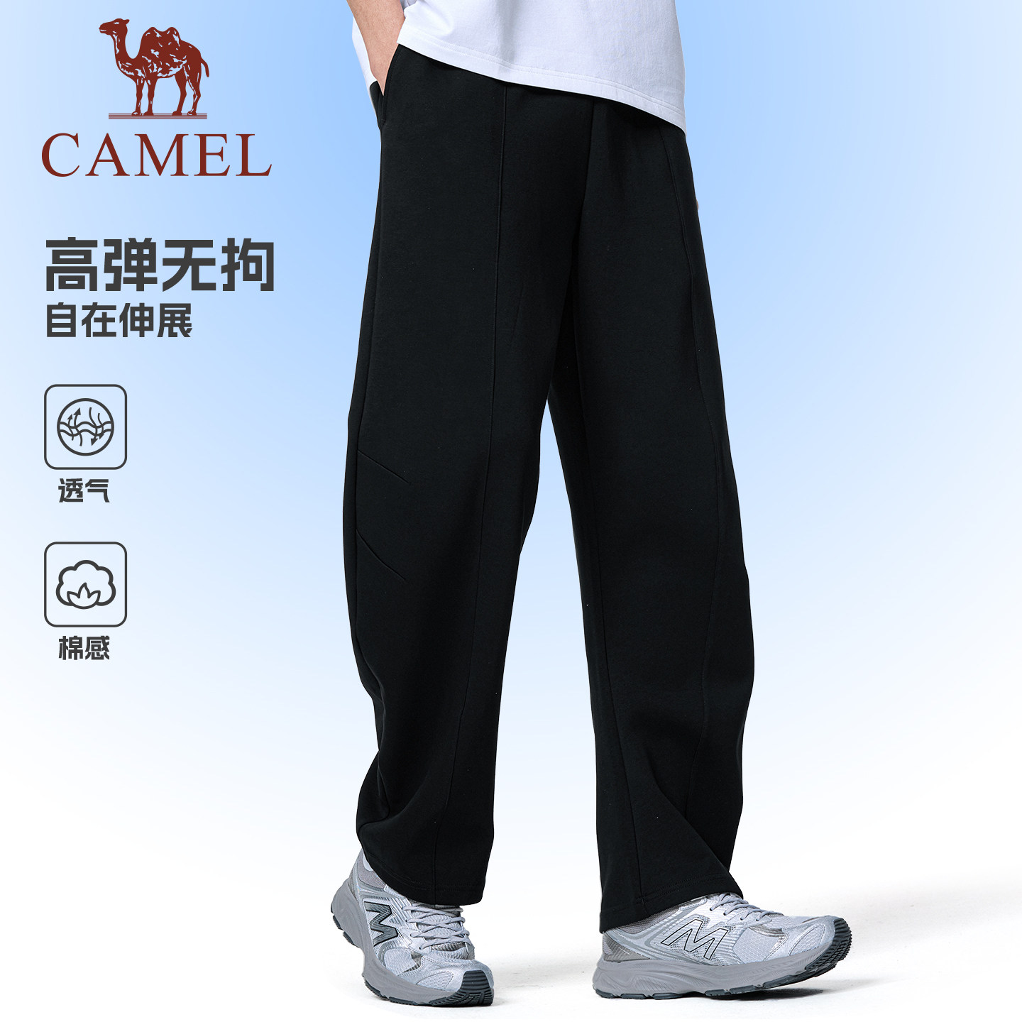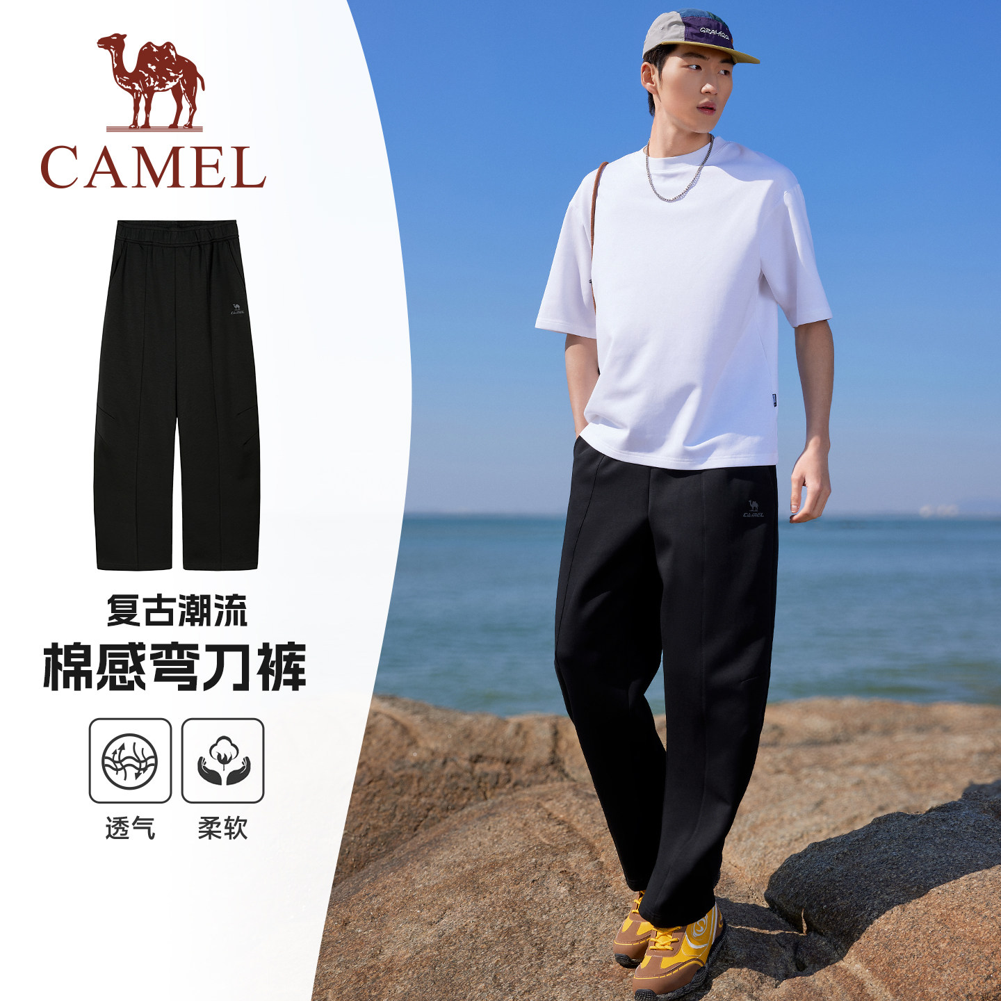 骆驼运动裤男休闲弯刀卫裤2026春季棉感宽松慵懒感直筒裤子潮女