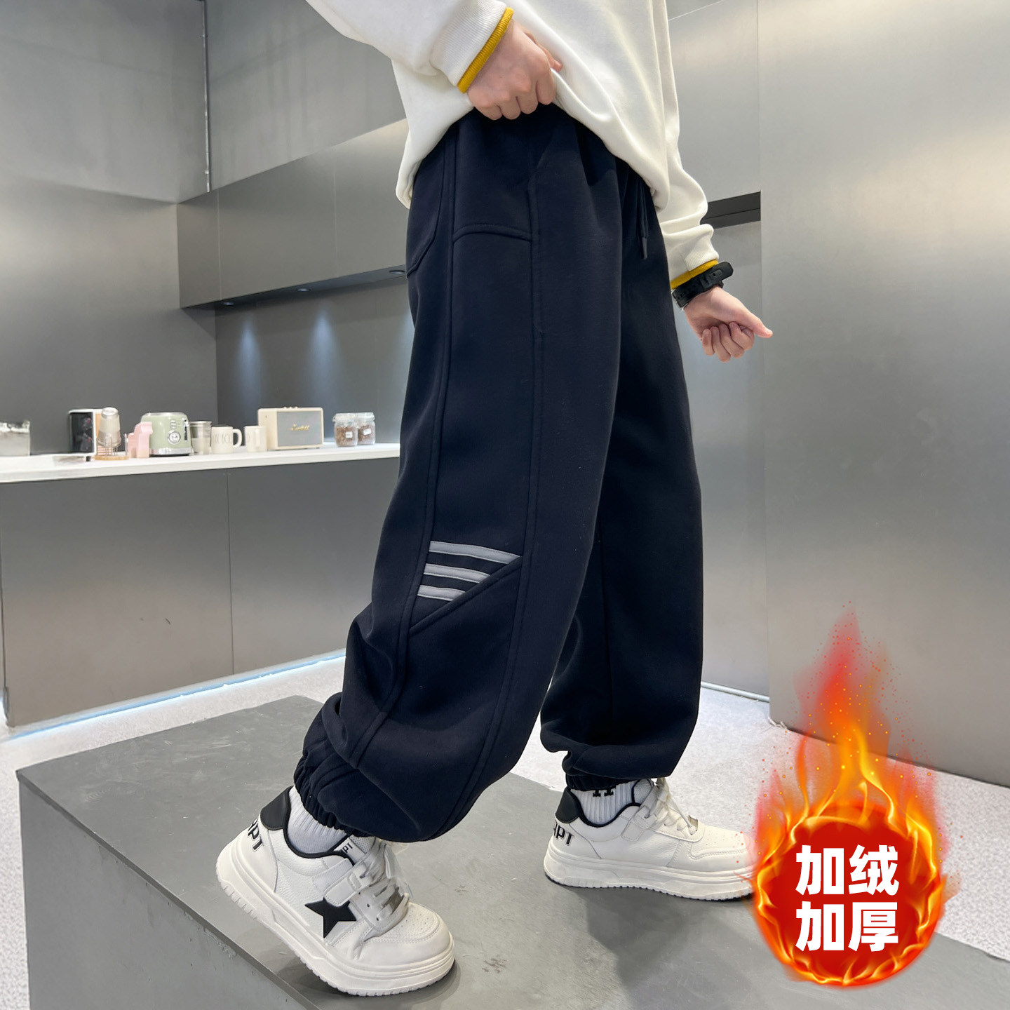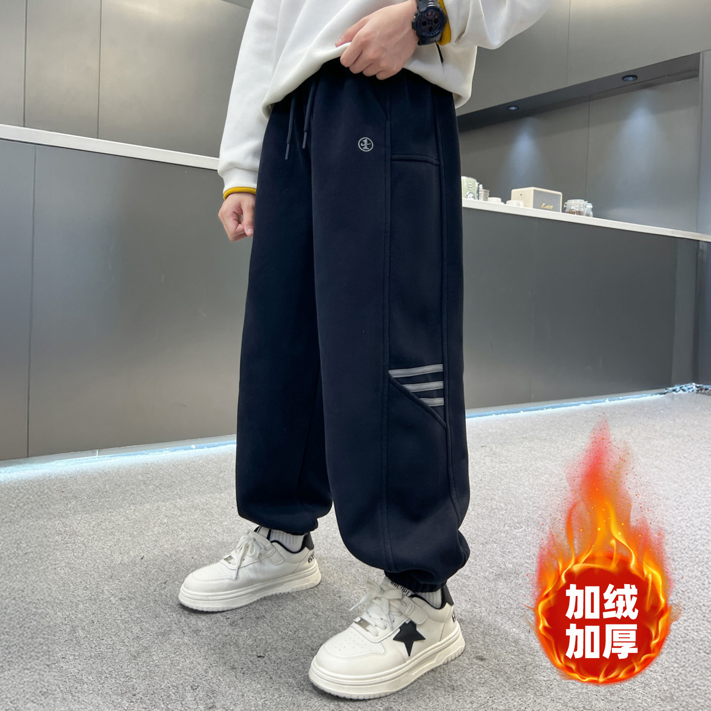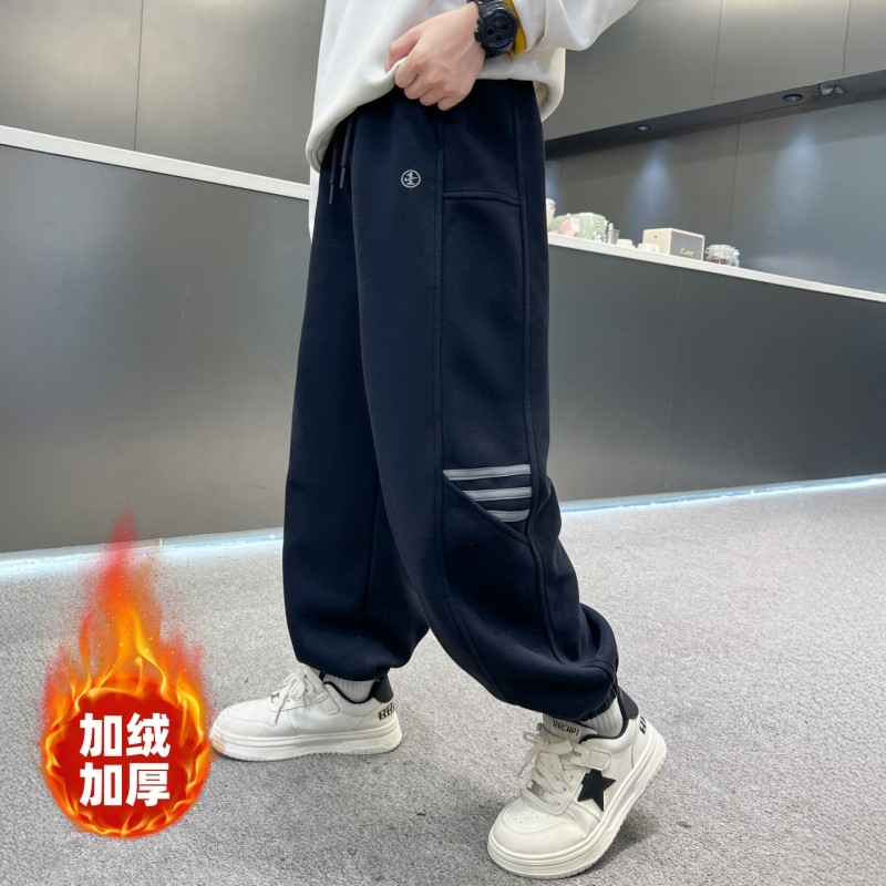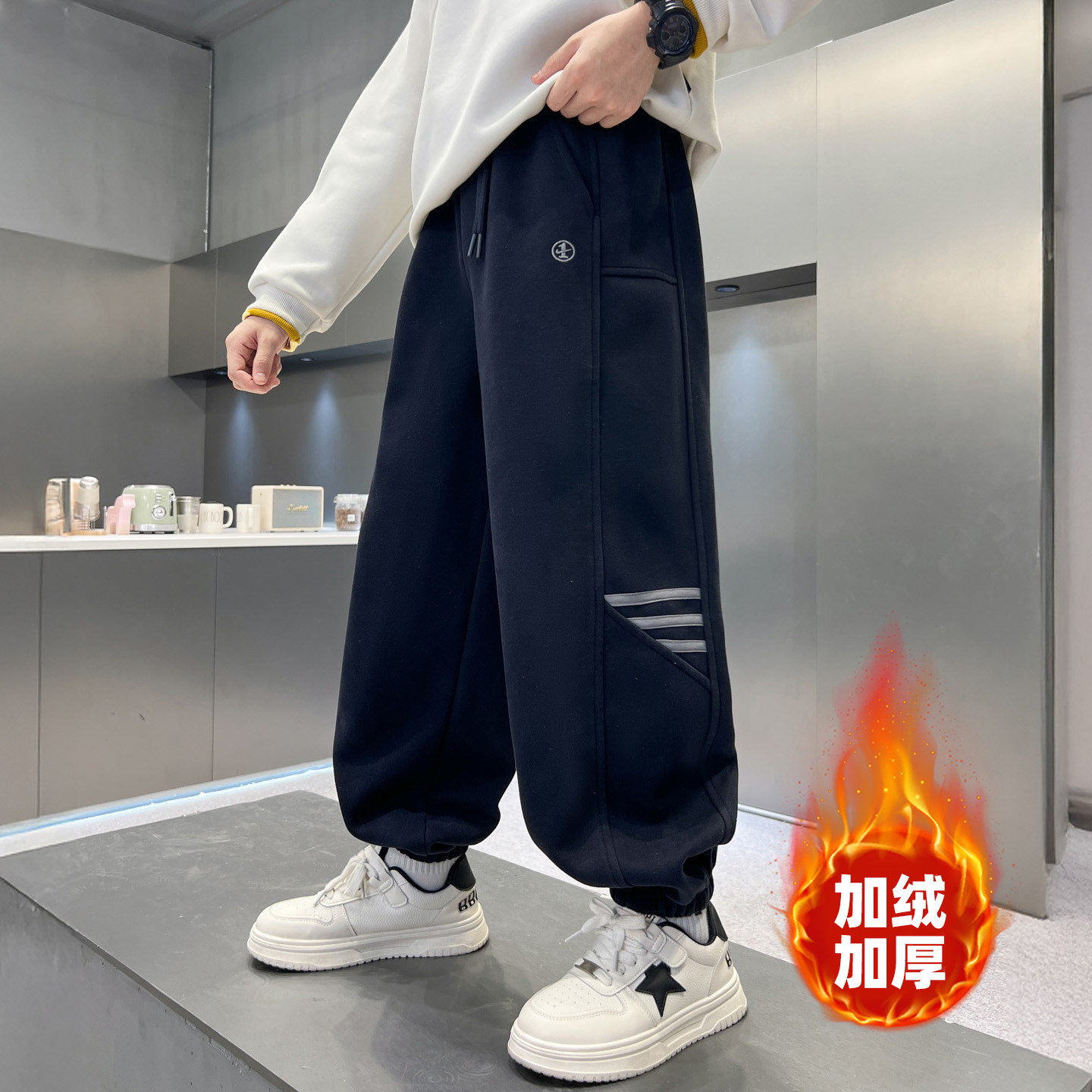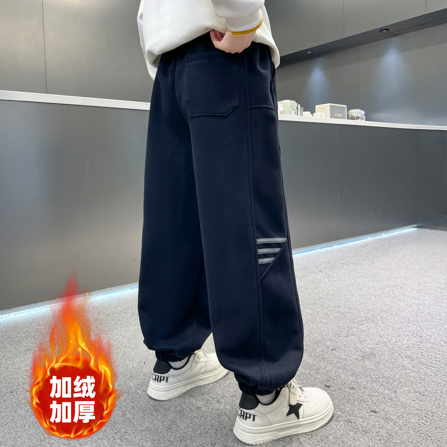 男童加绒裤子秋冬款2025新款儿童加厚运动裤中大童保暖休闲长裤潮