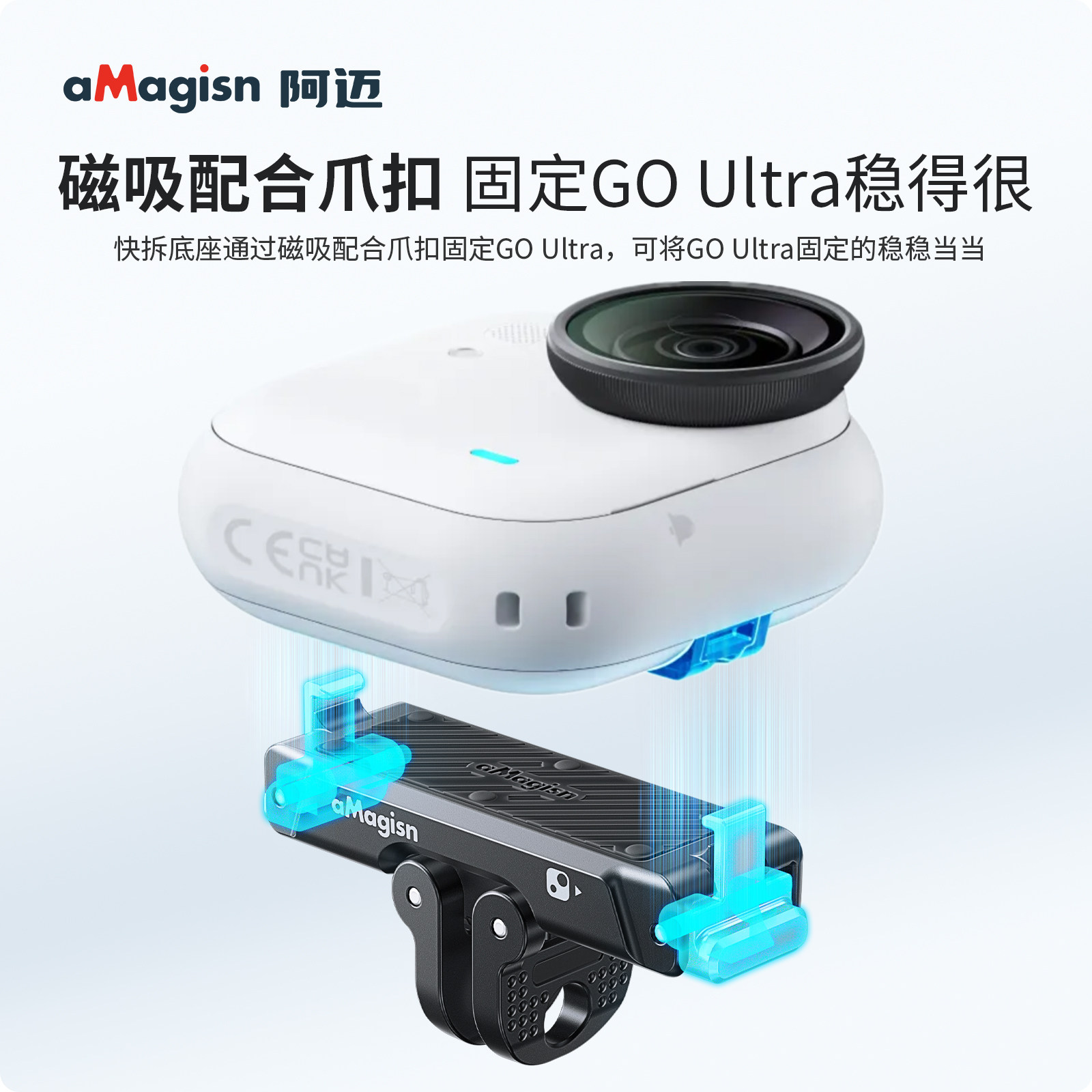 阿迈适配影石360 GoUltra金属磁吸底座快拆底座相机insta360GoUltra快拆转接头骑行自拍杆挂脖第一人称配件