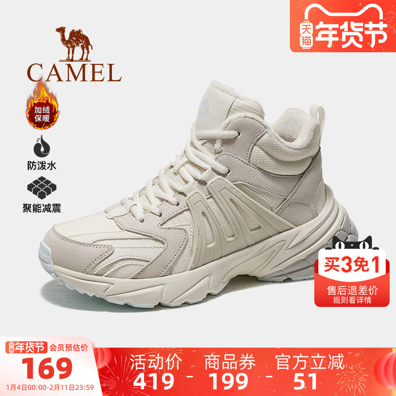 骆驼户外登山鞋冬季加绒保暖棉鞋雪地靴女鞋防泼水防滑耐磨徒步鞋