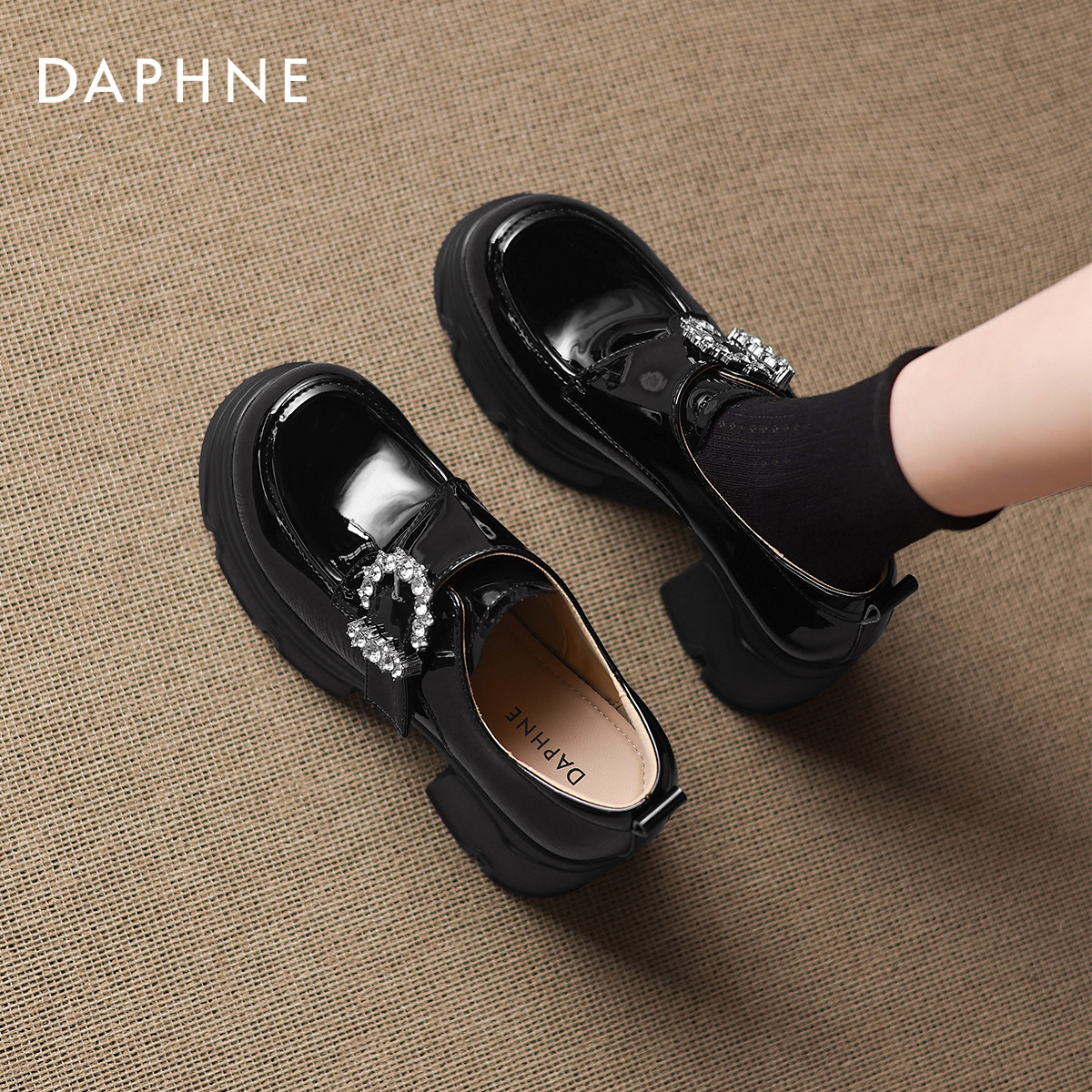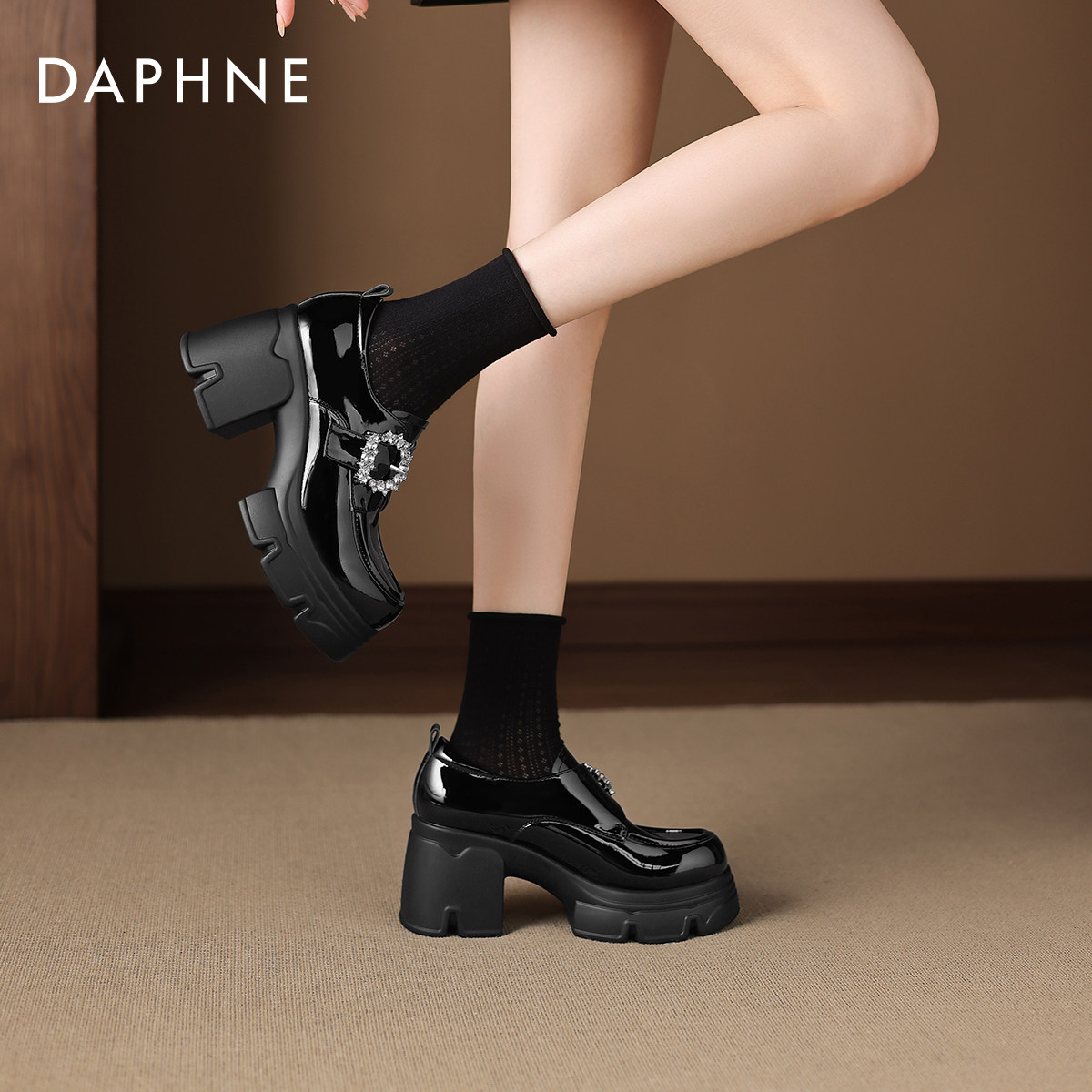 达芙妮粗跟乐福鞋女2026新款春季松糕英伦风单鞋增高一脚蹬小皮鞋