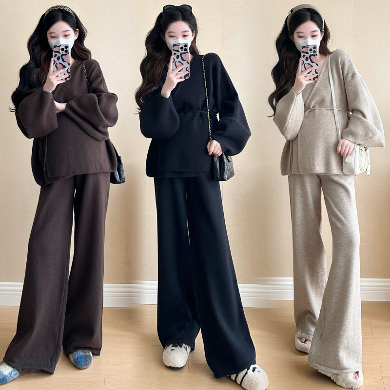 婧麒孕妇装秋冬套装2025新款时尚洋气时髦针织毛衣阔腿裤两件套女