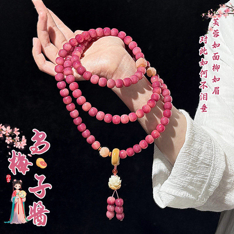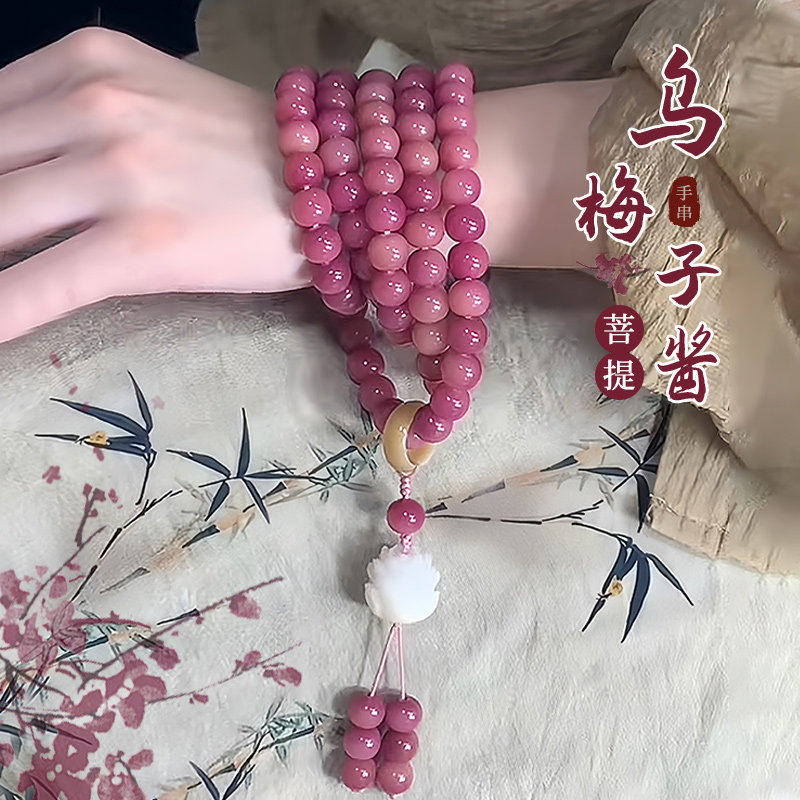 乌梅子酱108颗菩提手串国风莲花款菩提子佛珠文玩手链项链蔷薇