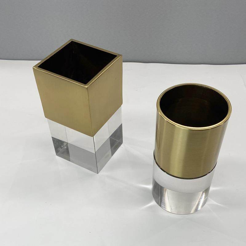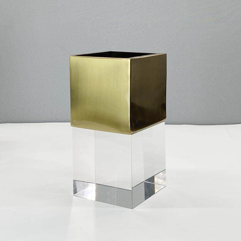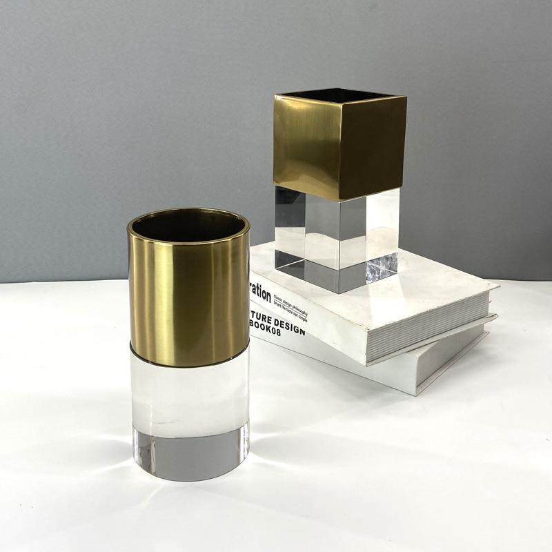 现代水晶花瓶几何金属花器客厅卧室花瓶摆件样板间设计师软装饰品