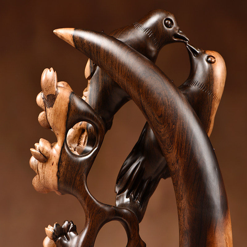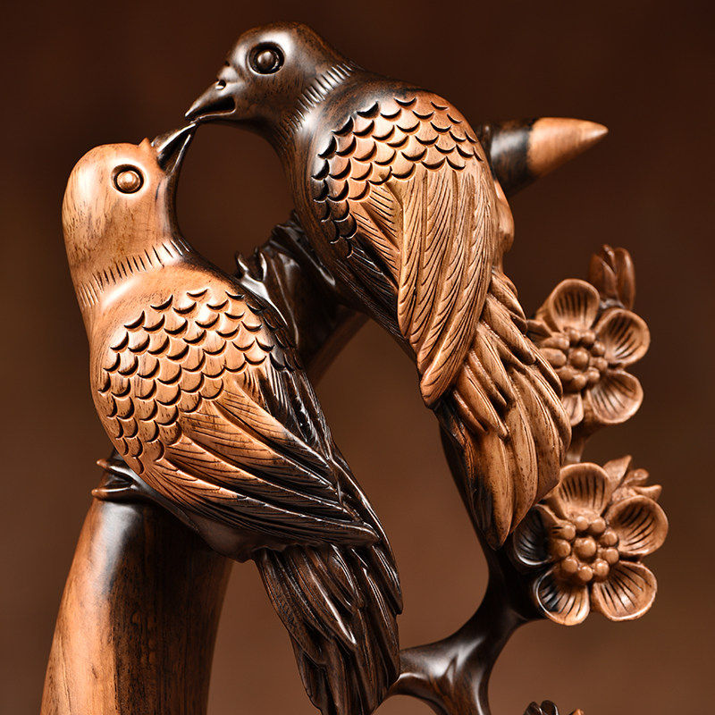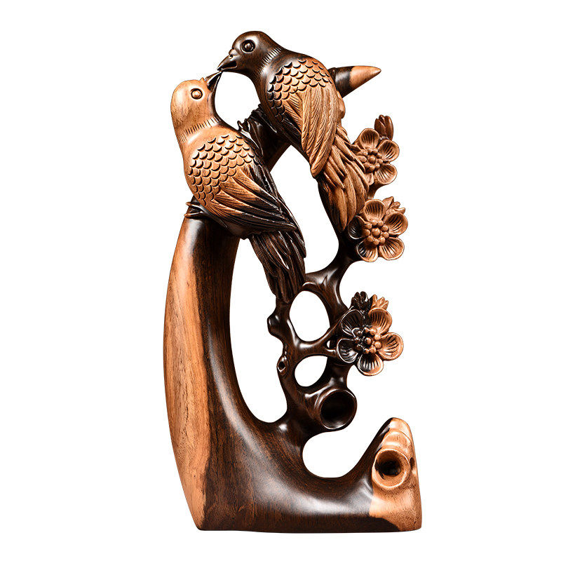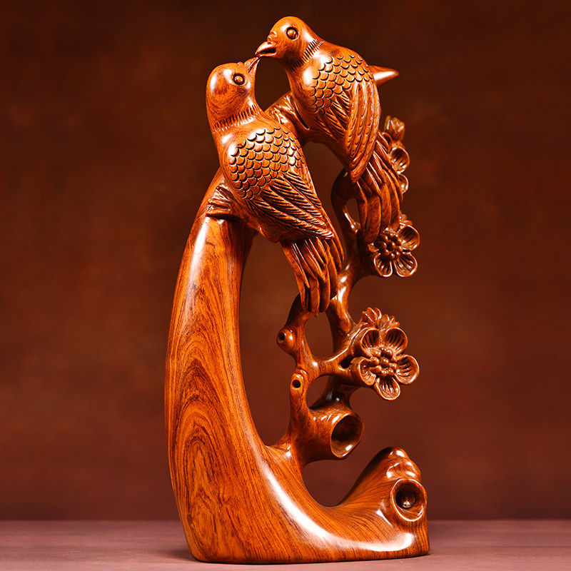 花梨实木喜上眉梢摆件木雕花鸟根雕客厅装饰品红木工艺品寓意礼品