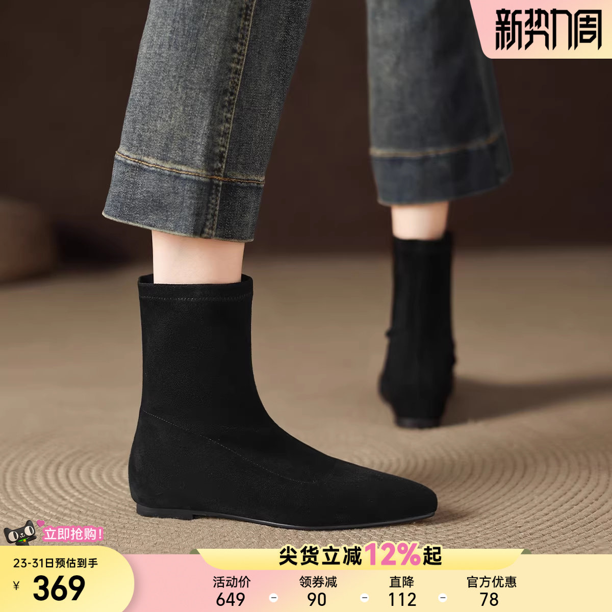 星期六官方旗舰店正品黑色短靴