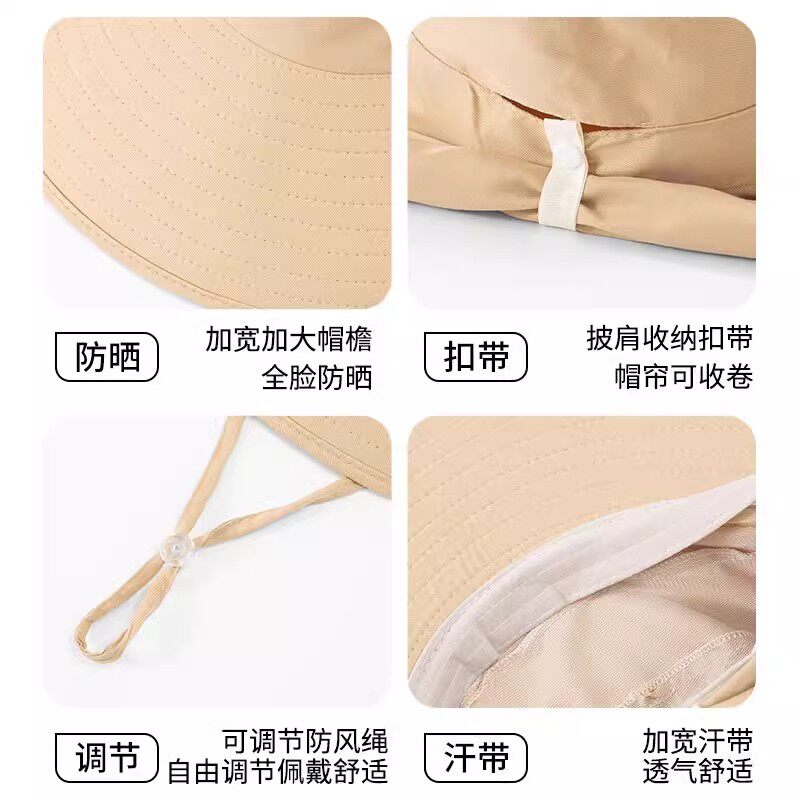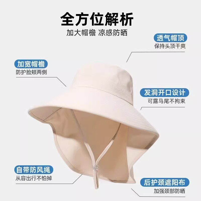 大帽檐遮阳帽女2025新款夏季防紫外线太阳帽护脖颈渔夫帽防晒帽子
