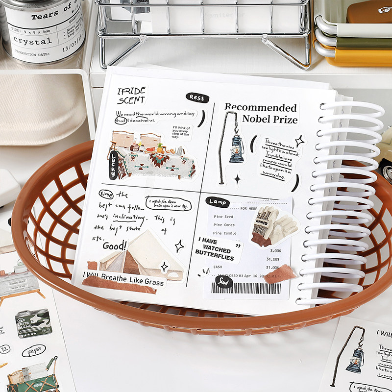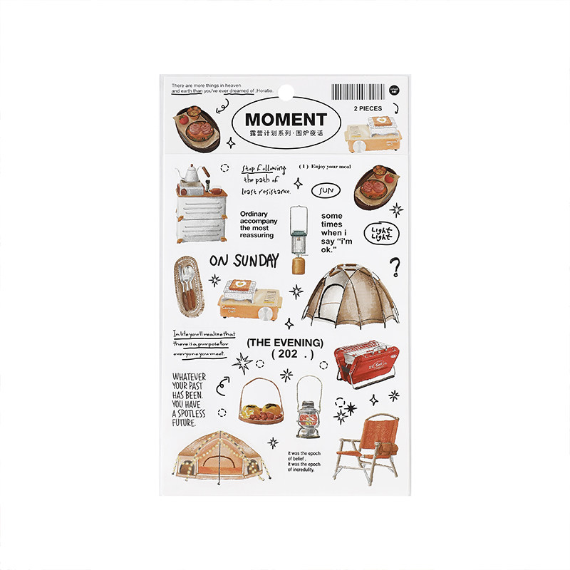 周末便利店露营计划围炉夜话不干胶贴纸diy手帐本装饰贴画英文2张