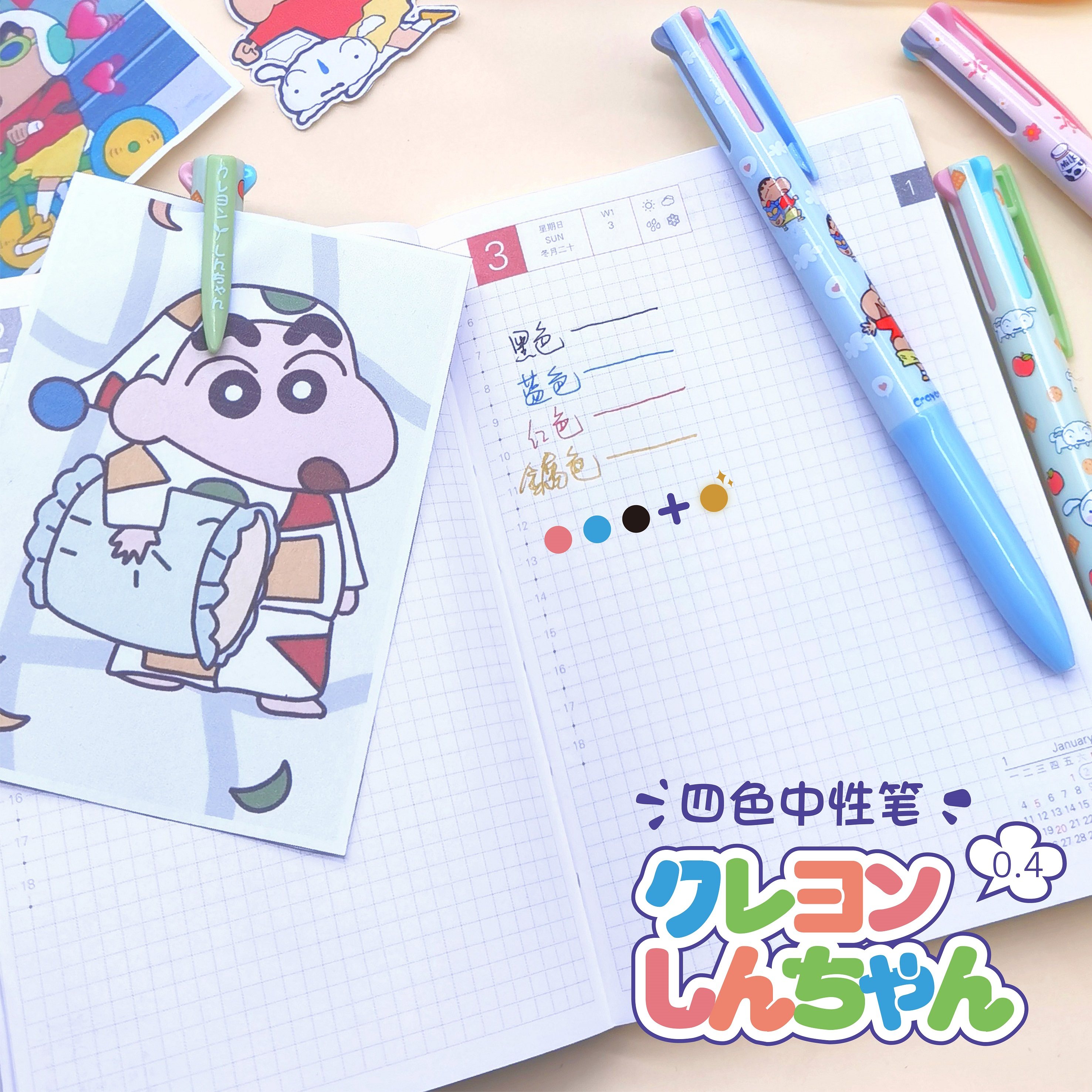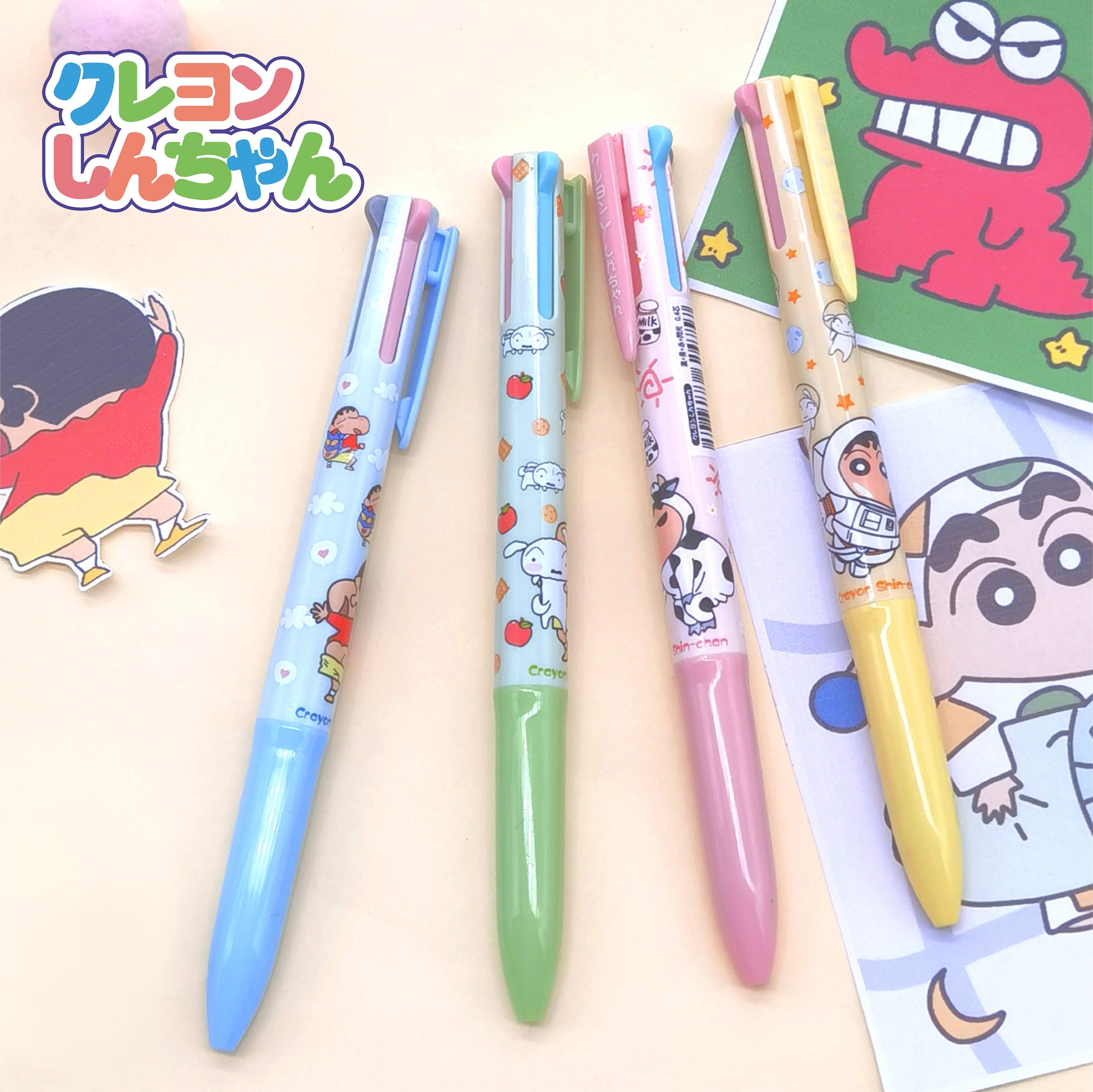蜡笔小新卡通限定多色中性四色笔可爱日韩小清新按动创意多功能笔