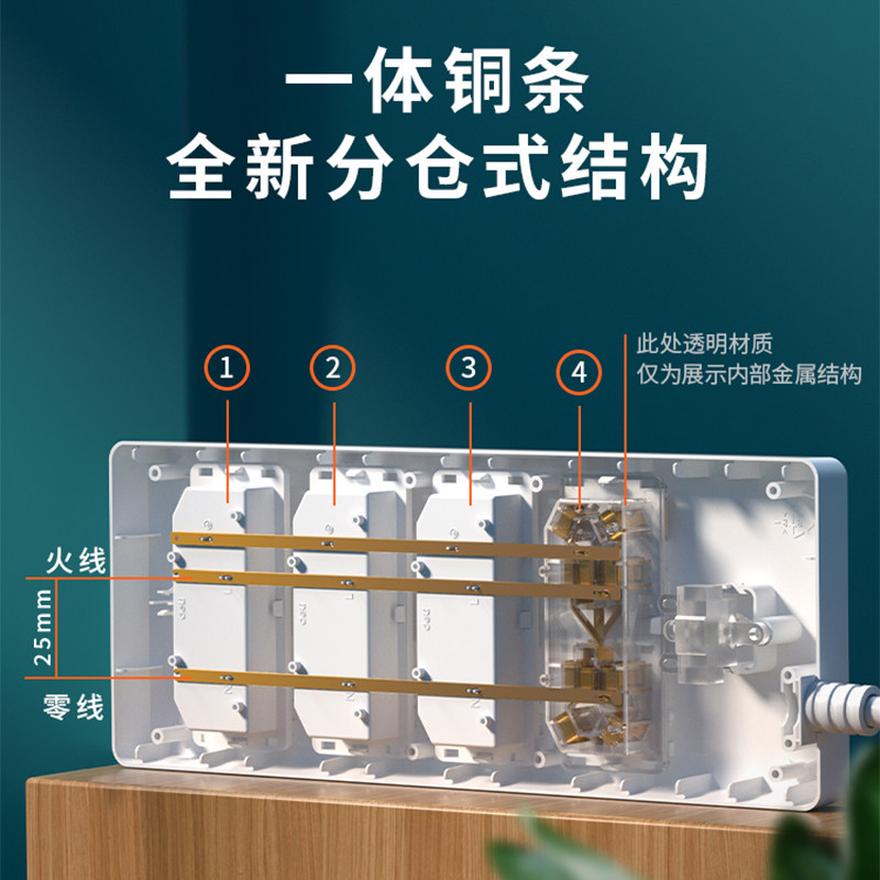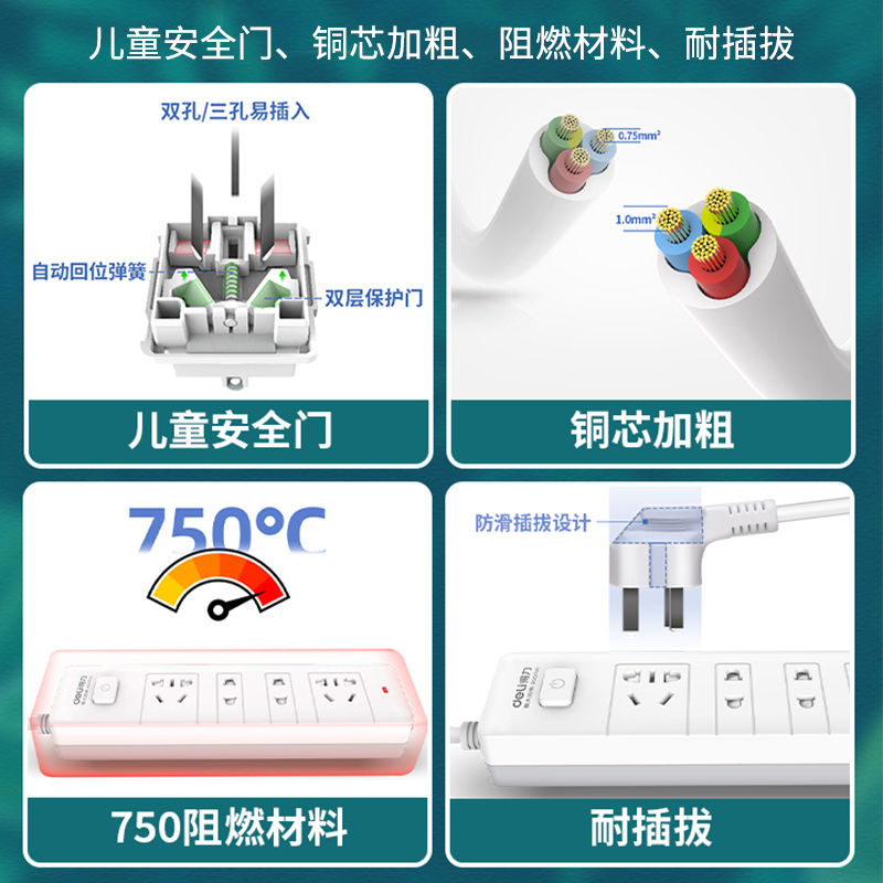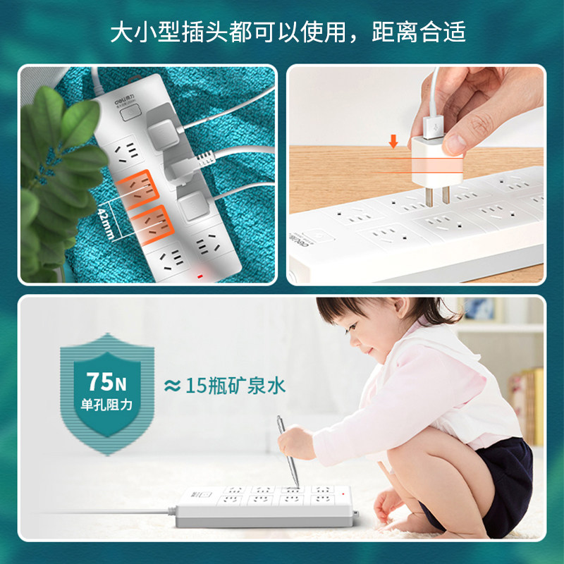 得力电源插座接线板插排拖线板带线面板USB多孔位排插办公家用