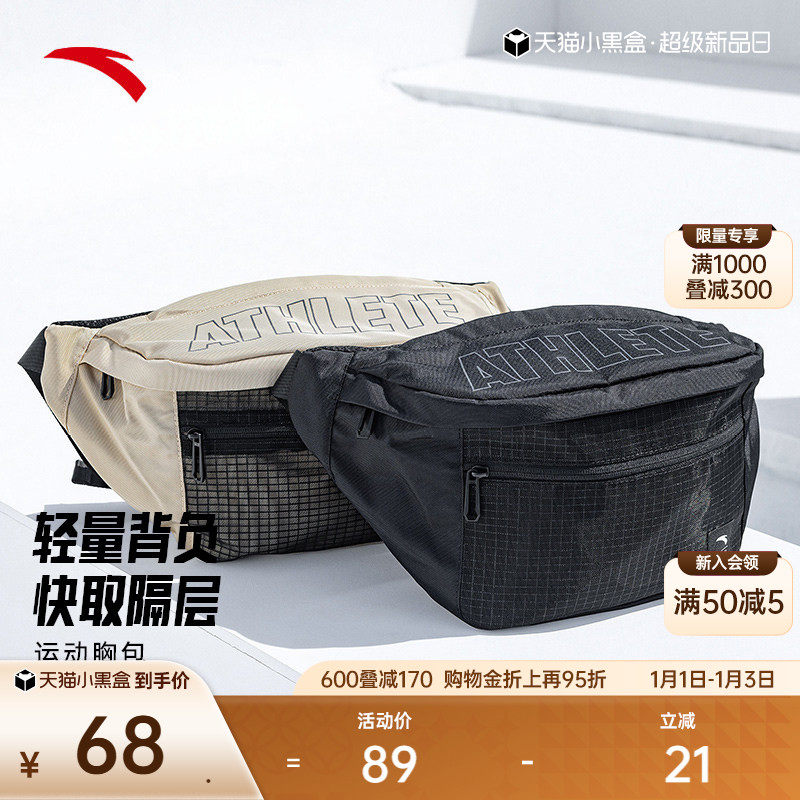 安踏跑步腰包男女单肩通勤休闲黑色斜挎运动包胸包跑步手机包情侣