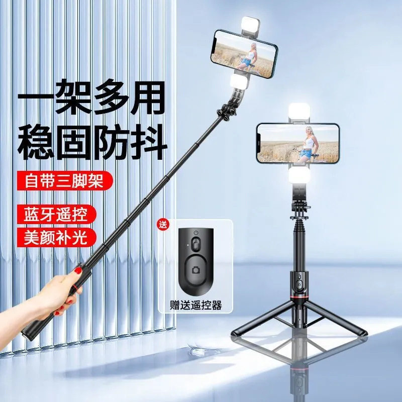 叠品A21P2025新款金属多功能补光自拍杆三脚架遥控拍照神器手机直播支架360°旋转拍照抖音蓝牙便携式防抖