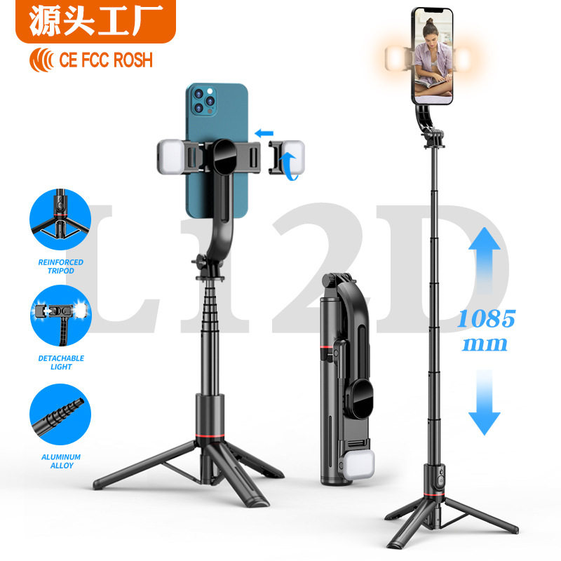 L12D抖音蓝牙自拍杆桌面直播手机支架落地一体式三脚架补光灯