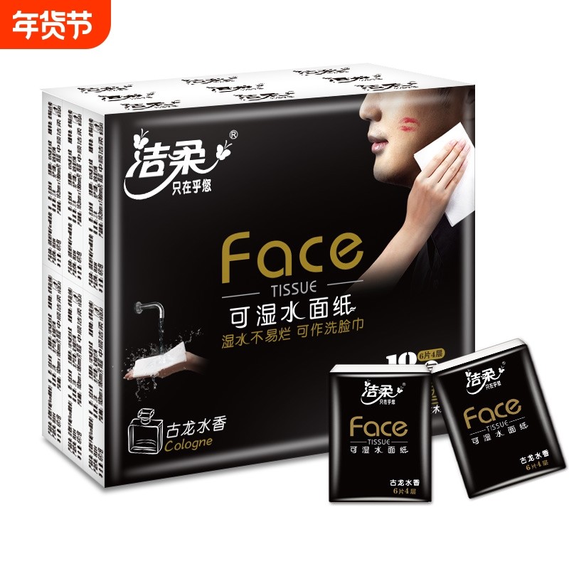 18包/36包/54包 洁柔纸手帕Face黑 超迷你古龙水香味6片4层