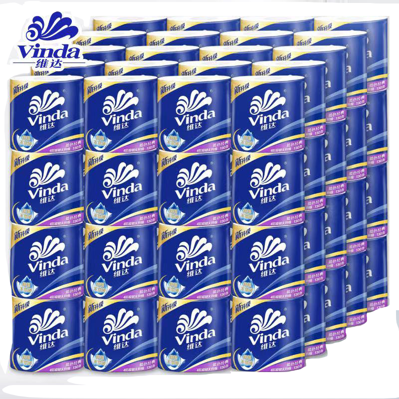 维达卷纸130g大卷蓝色经典家用4层卫生纸有芯卷筒纸整箱厕纸棉韧