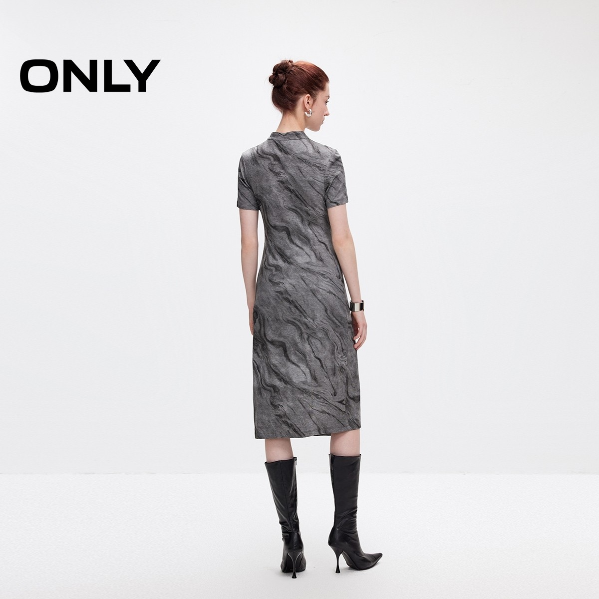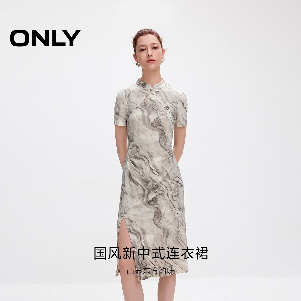 【ONLY奥莱】春季新款国风新中式盘扣收腰针织短袖连衣裙女