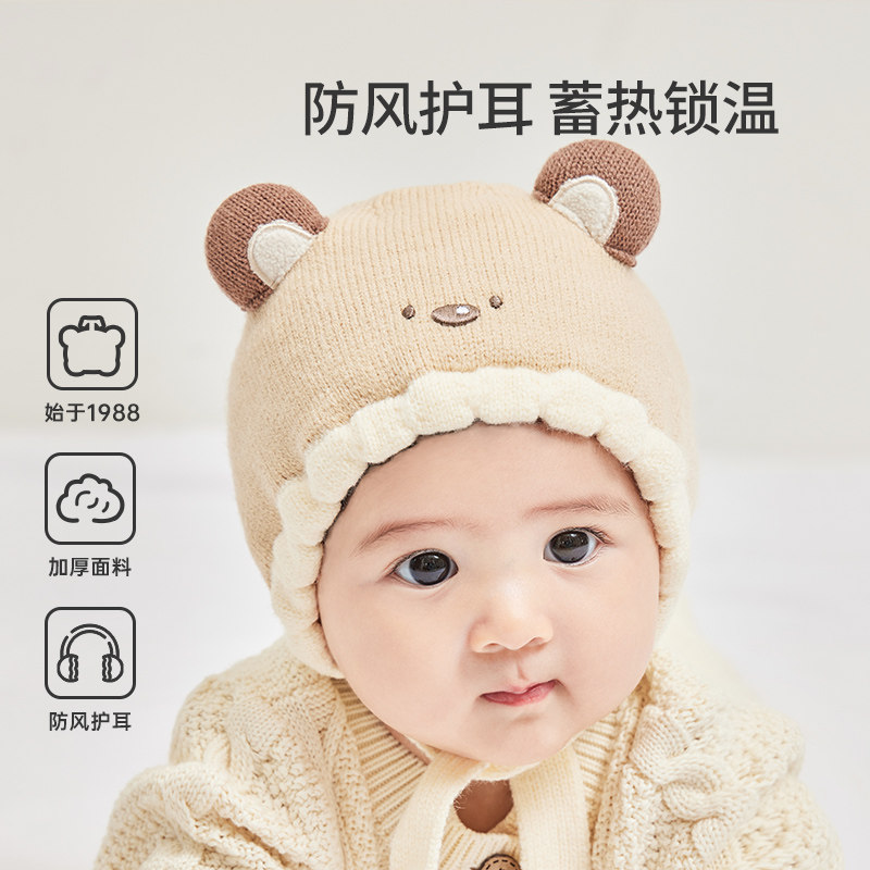 婴儿帽子秋冬季新生儿小月龄针织胎帽婴幼儿宝宝保暖防风护耳冬帽