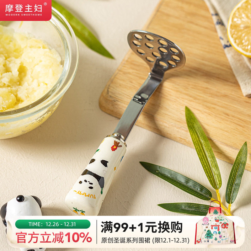 摩登主妇mototo熊猫316L不锈钢土豆泥压泥器婴儿辅食捣泥器按压器