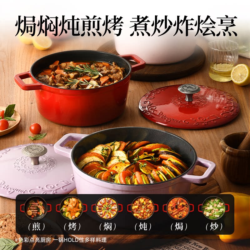 Breguet宝玑红色珐琅锅家用新婚乔迁礼物铸铁锅焖炖汤锅燃气煮锅