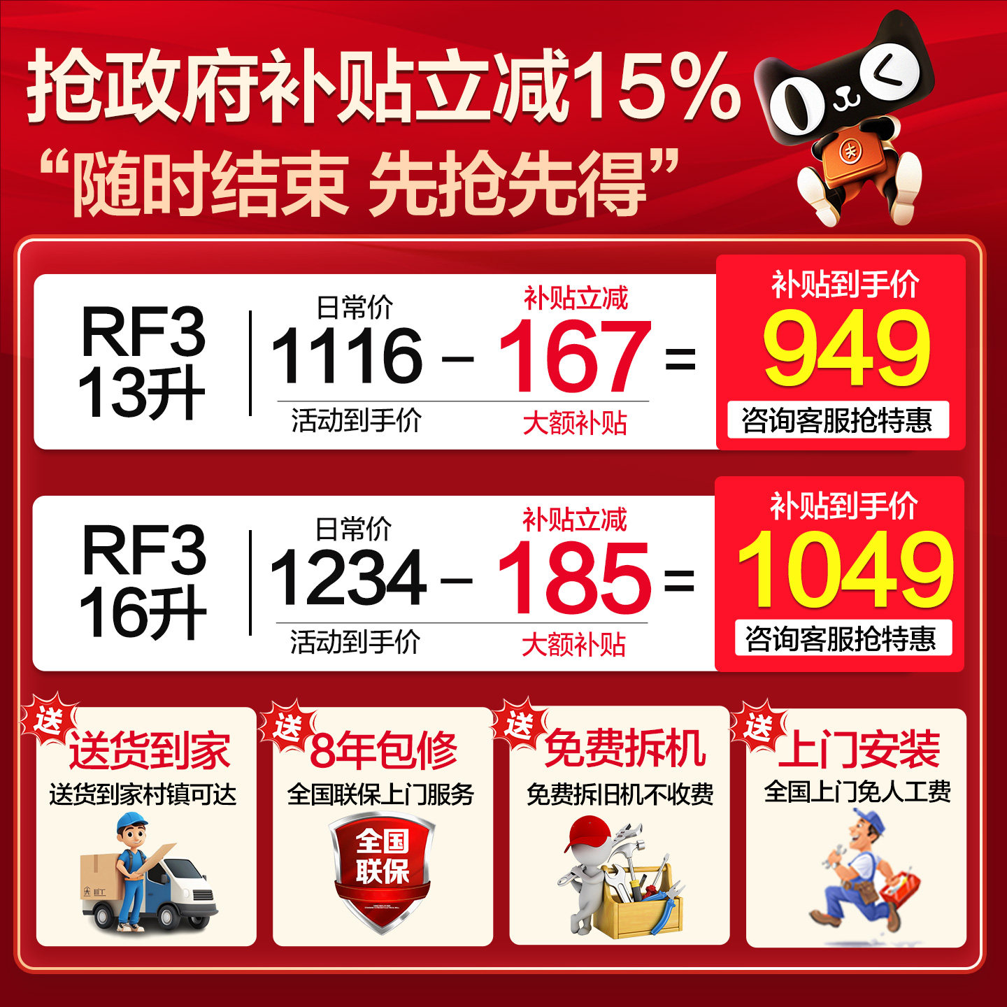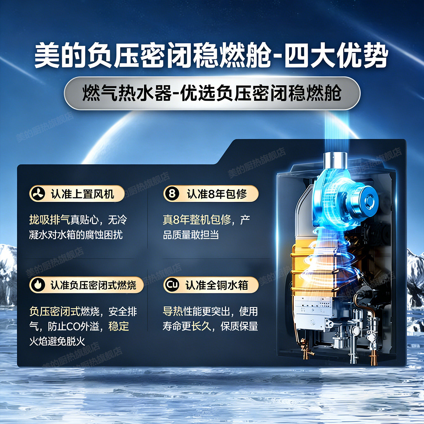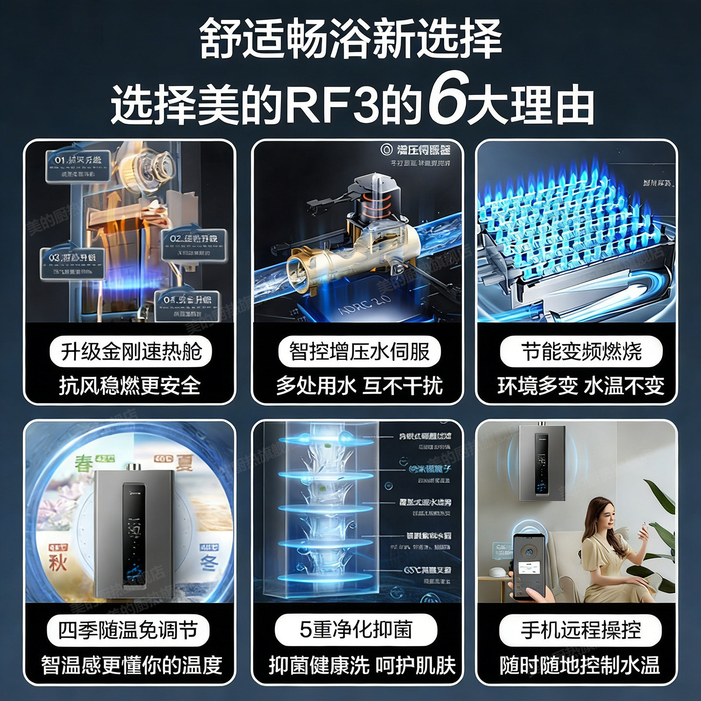 美的燃气热水器家用天然气13/16升水伺服恒温即热式官方旗舰店RF3