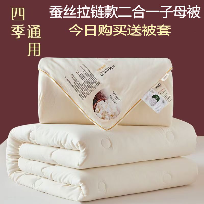 【送被套】蚕蛹蛋白二合一子母被蚕丝被加厚冬被拉链款春秋保暖被
