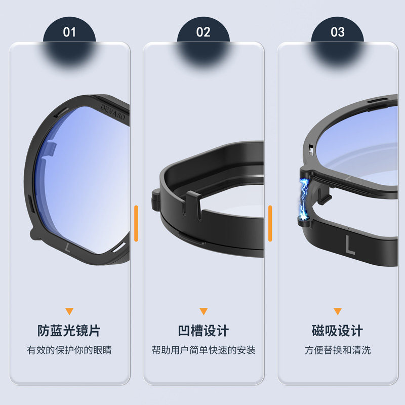 DEVASO适用于PS VR2眼镜片PlayStation vr2磁吸防蓝光镜片镜头防刮保护镜框索尼PS5 VR眼镜配件