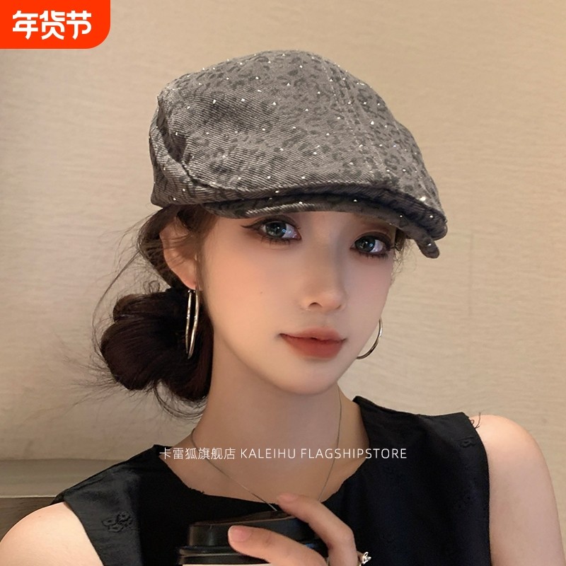 帽子miu系复古小波点贝雷帽百搭显脸小八角帽秋季灰色咖色白色
