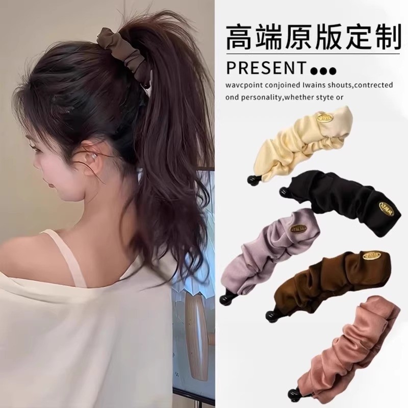 缎面褶皱香蕉夹发夹女2025新款高马尾固定神器后脑勺竖夹夹子头饰