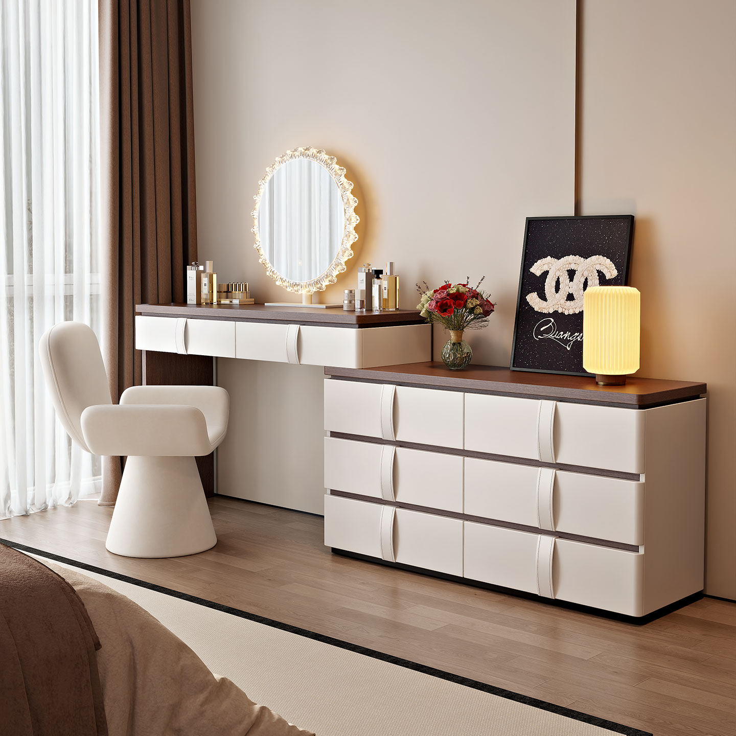 现代简约梳妆台2026新款轻奢高级感卧室化妆桌斗柜实木收纳储物柜