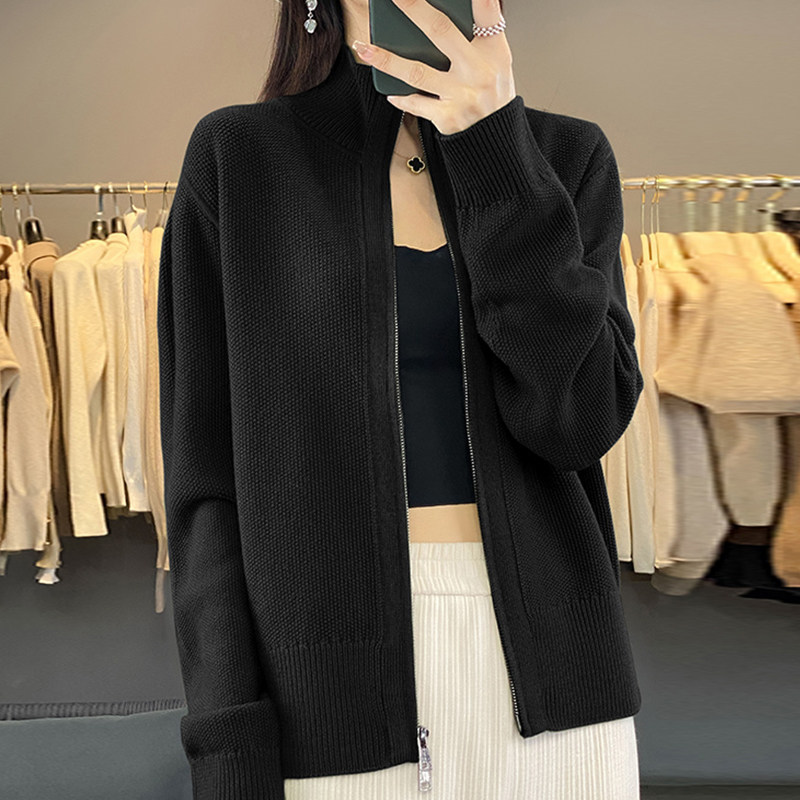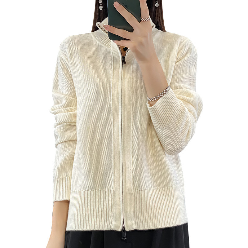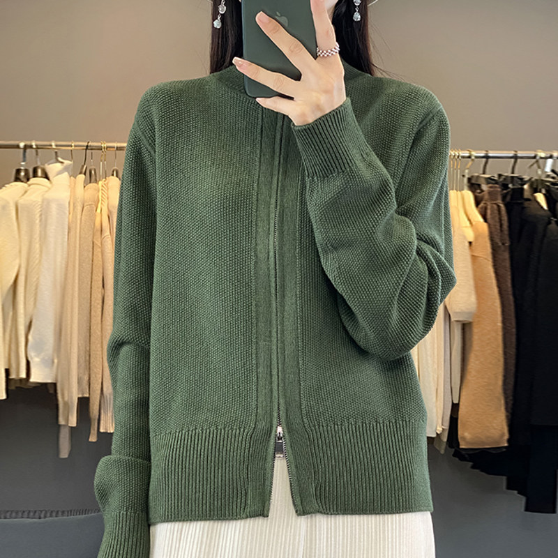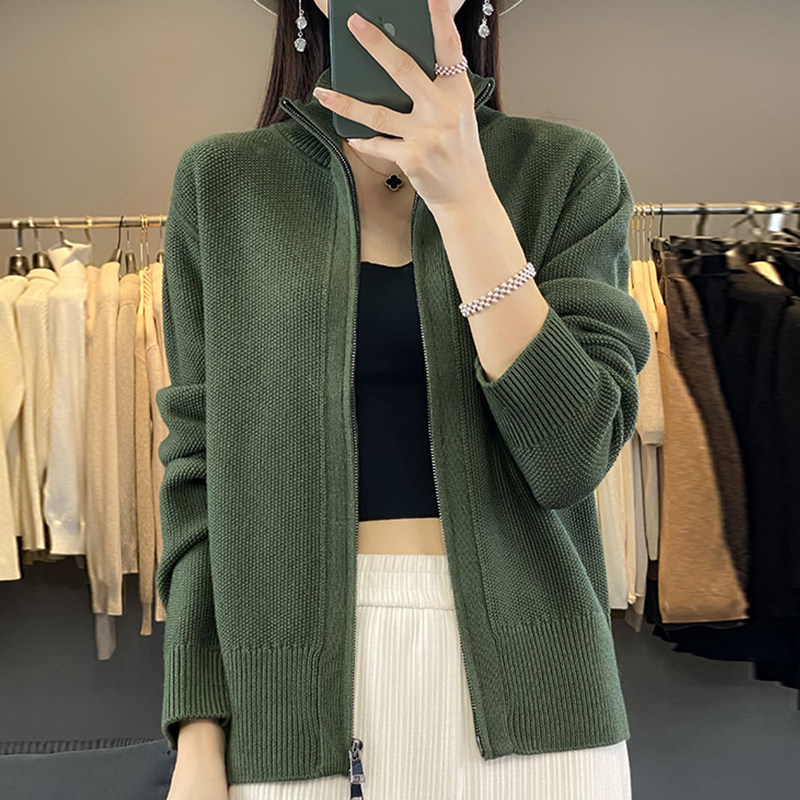 撤标撤柜(A)休闲拉链针织开衫外套女春秋款外穿大码女装秋冬毛衣