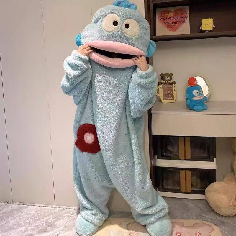 丑鱼儿童可爱搞怪连体睡衣男女童秋冬季加厚珊瑚绒卡通亲子家居服