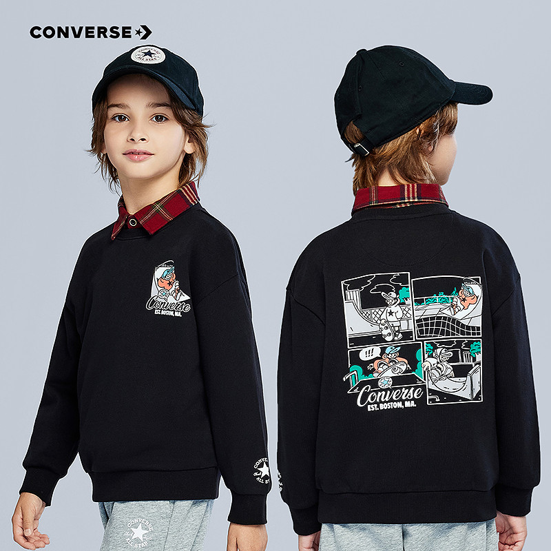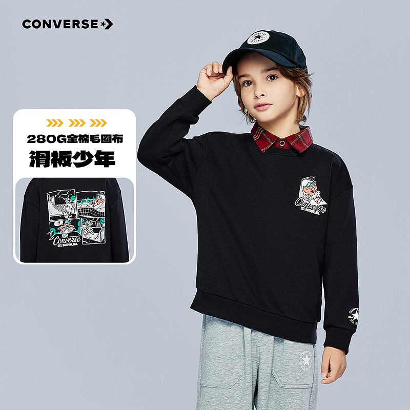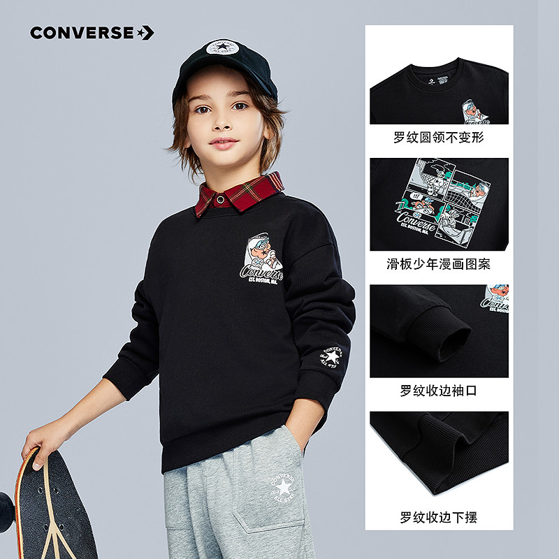 匡威童装男童卫衣青少年春季滑板少年纯棉柔软舒适宽松休闲运动
