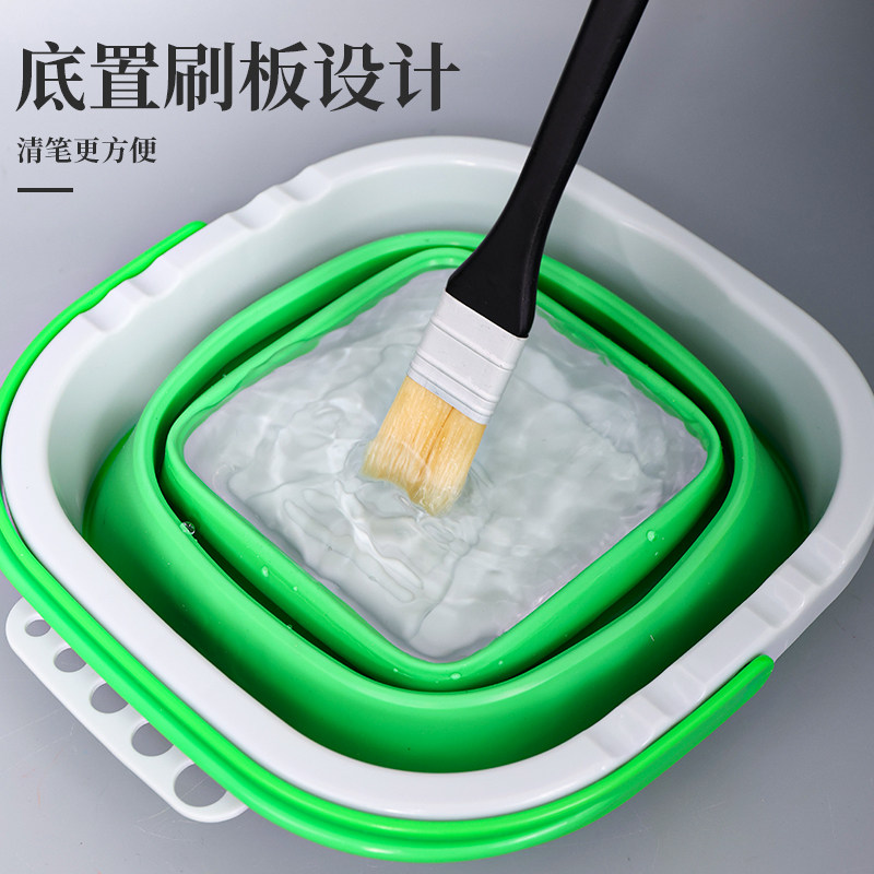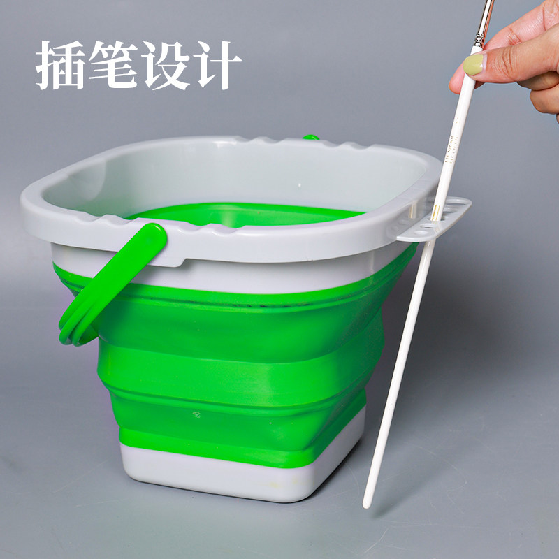 青竹美术洗笔筒可折叠水桶便携大容量硅胶洗笔桶美术生专用画画水粉水彩颜料涮笔筒颜料国画油画色彩清洗桶