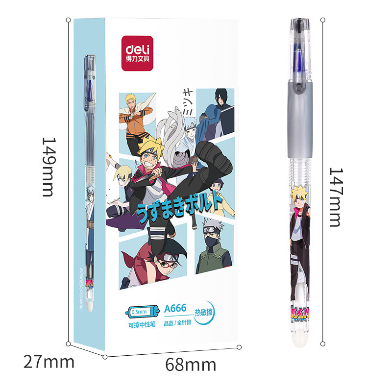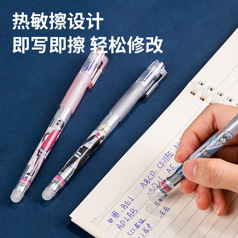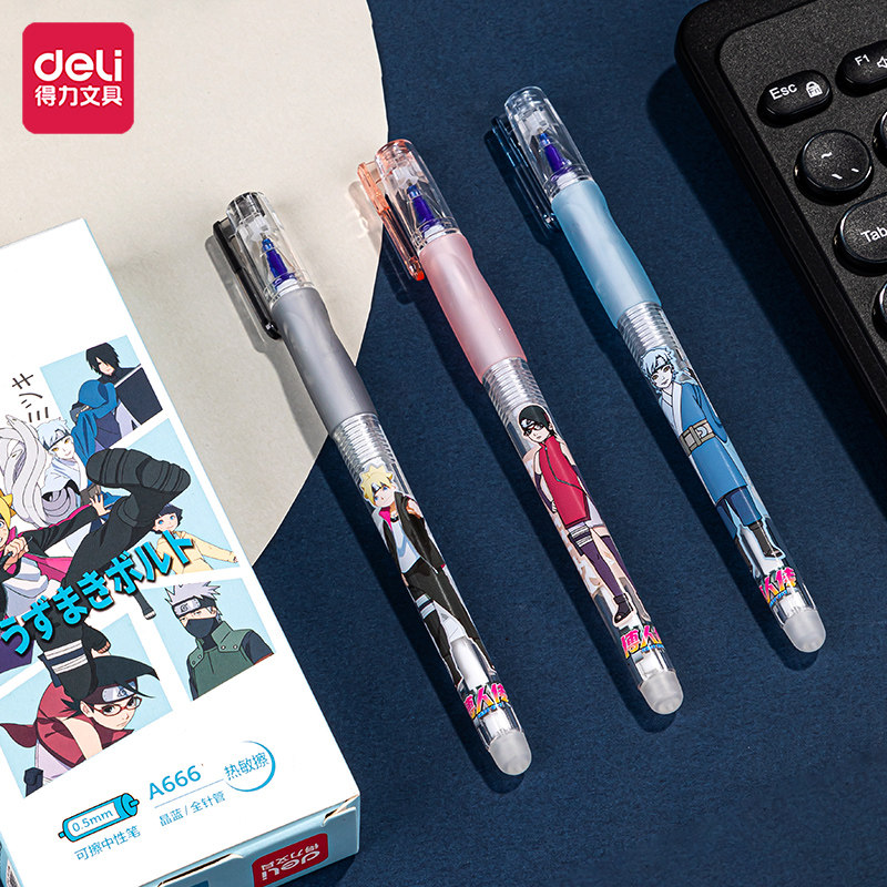 得力可擦中性笔火影忍者联名热敏擦水笔0.5mm晶蓝色摩易擦签字笔