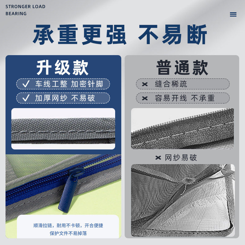 网格文件袋加厚透明网格拉链袋A4试卷收纳袋学生用考试文具袋防水笔袋办公用品批发公文档案袋资料袋包邮