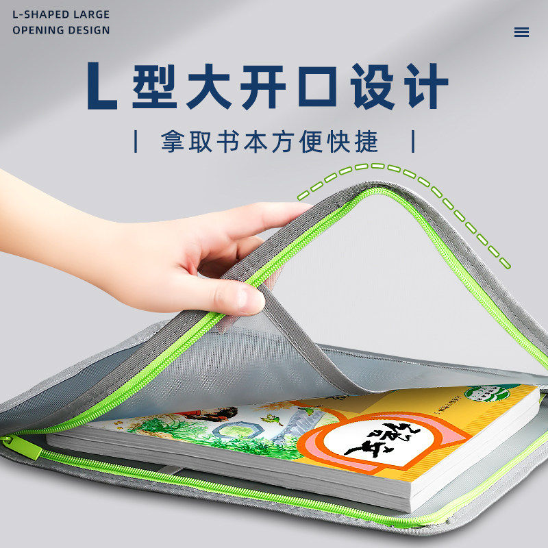 L型科目分类袋透明文件袋拉链式网纱大开口学生手提装书袋考试专用袋子小学生补习作业袋档案袋试卷收纳袋