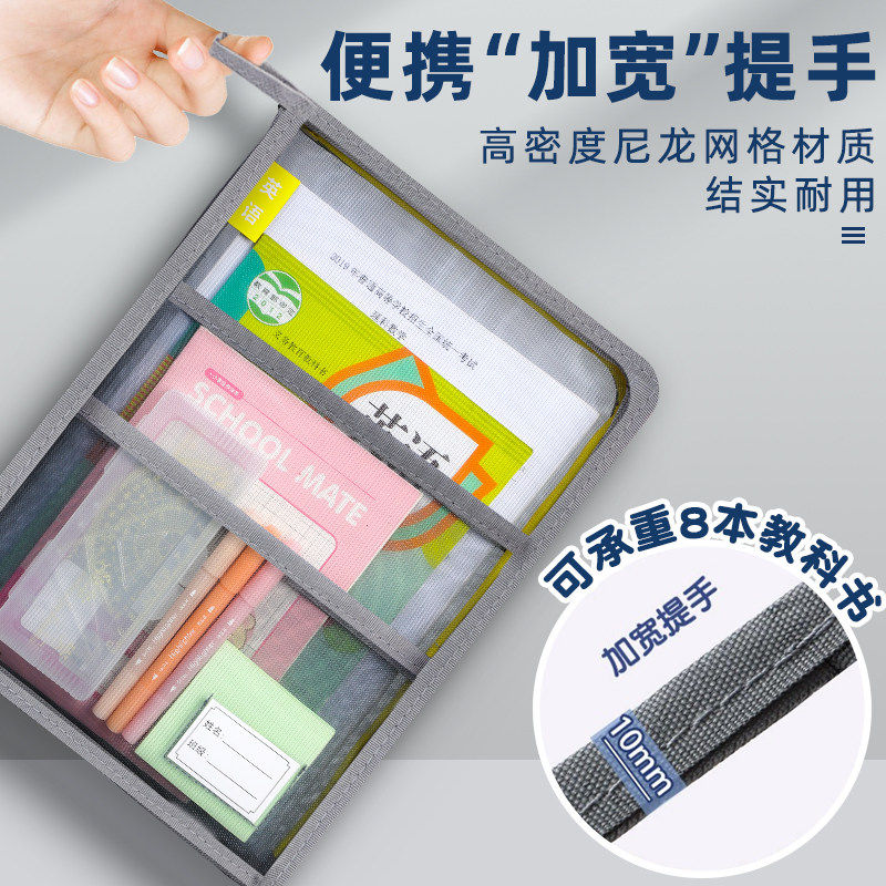 科目分类文件袋透明拉链式a4收纳拎书课外班作业男女孩书包小学初中生l型考试试卷学科补习网纱手提袋大容量