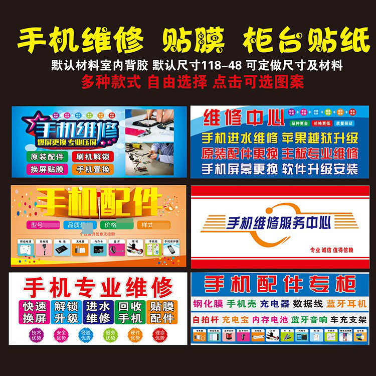 手机维修 贴膜配件 手机柜台贴纸 电脑维修 手机店维修广告海报