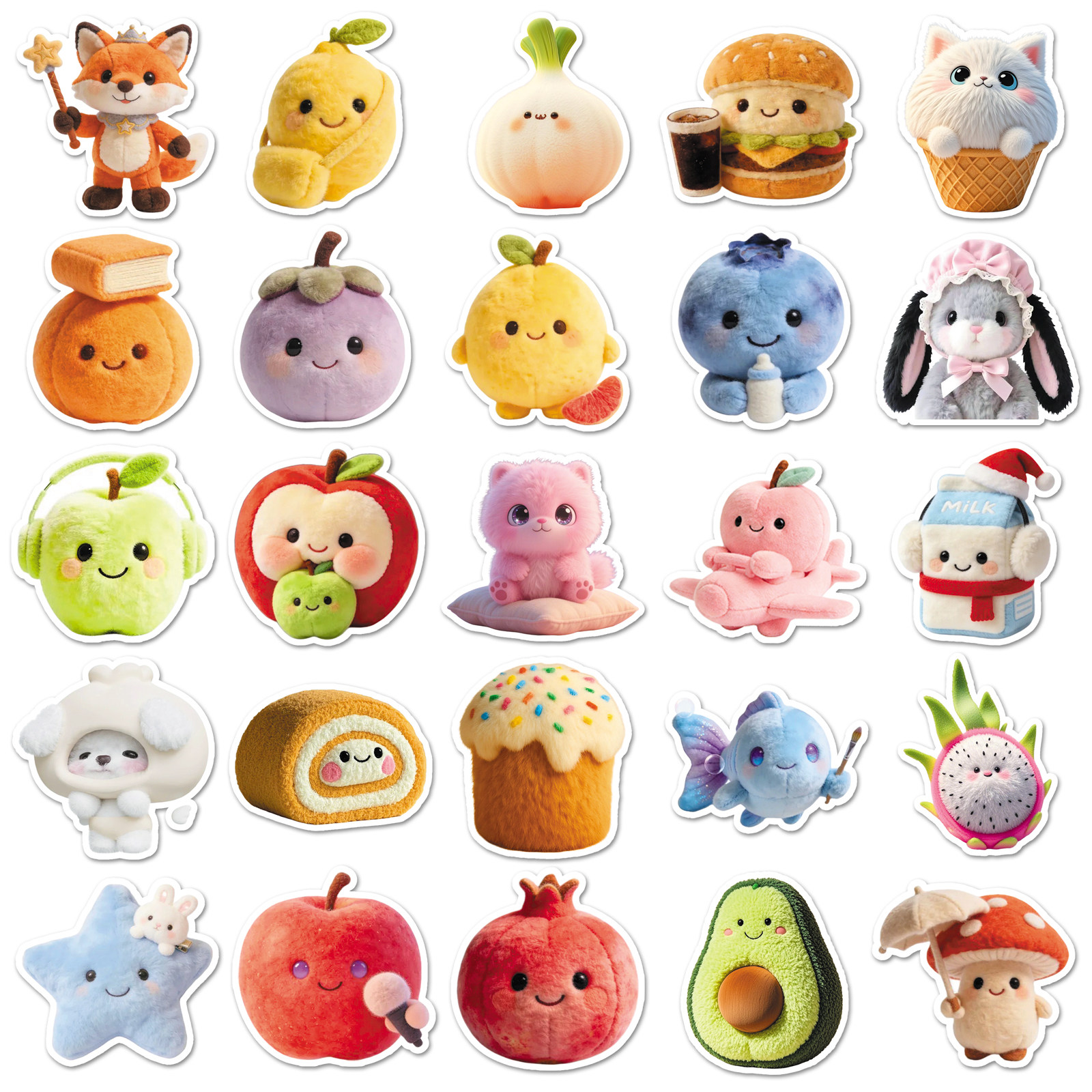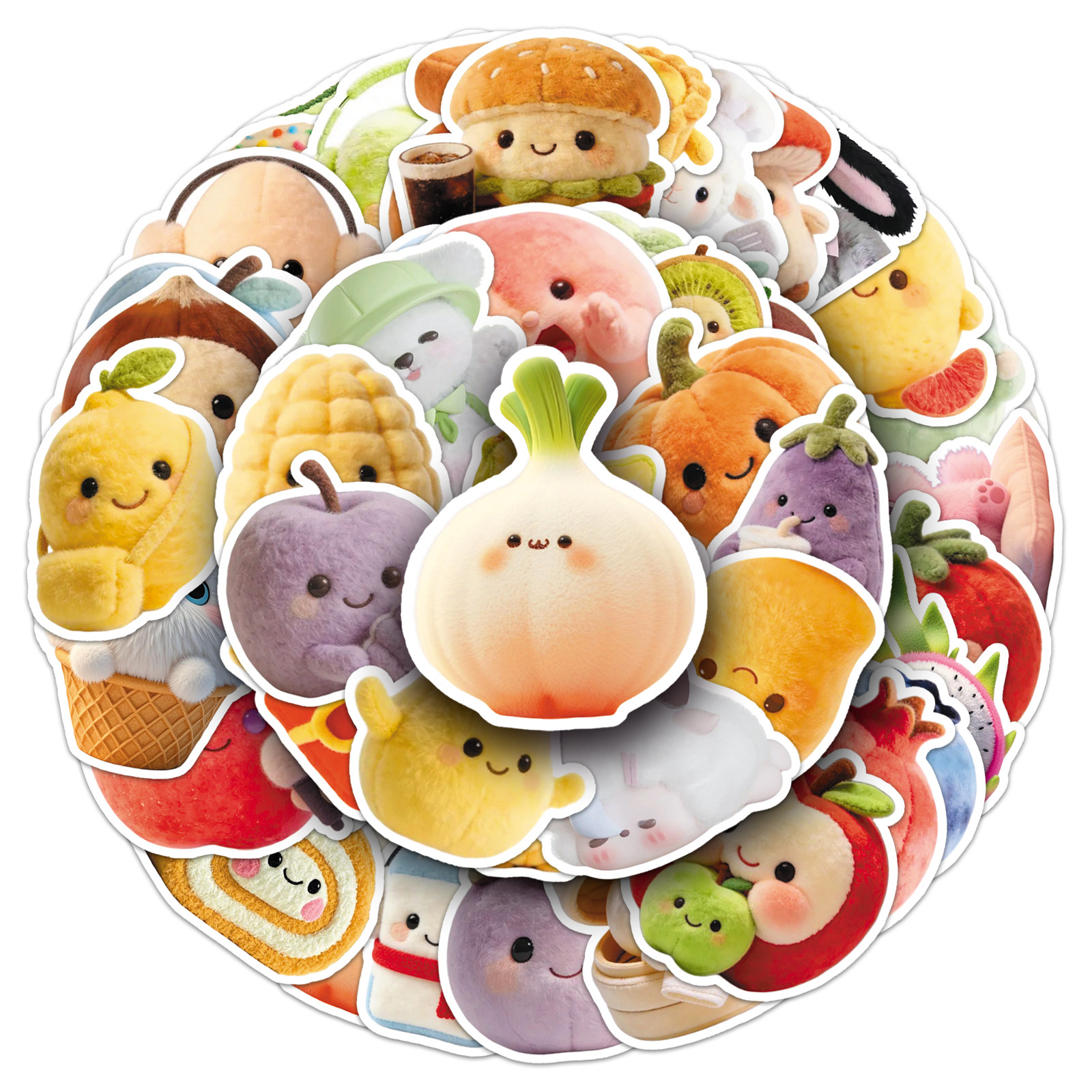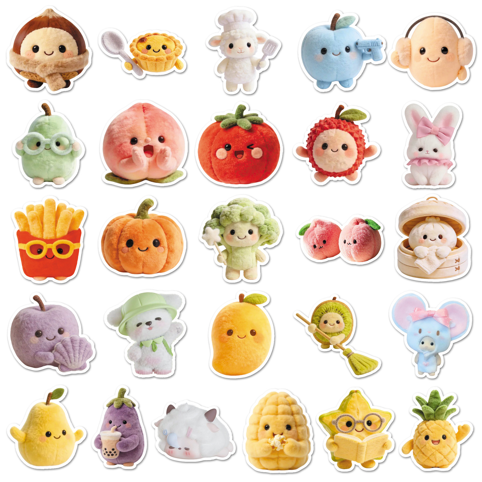 102张简约ins毛绒玩具可爱贴纸女孩茄子西红柿水果蔬菜头像咕卡手帐素材文具宿舍衣柜墙壁手机壳装饰防水贴纸