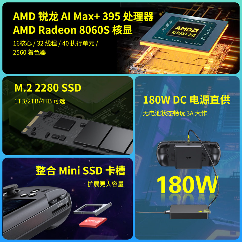 GPD win5 2025高性能7英寸游戏掌机 AMD395处理器 媲美4060独显 性能3倍于同类型掌机可拆卸电池高刷触屏