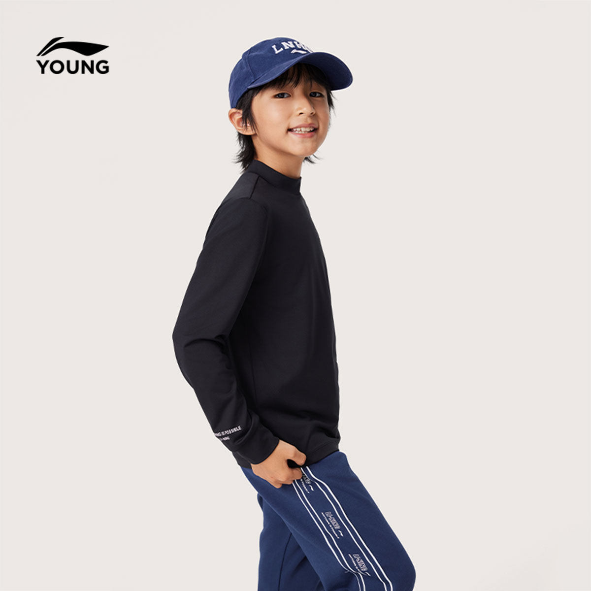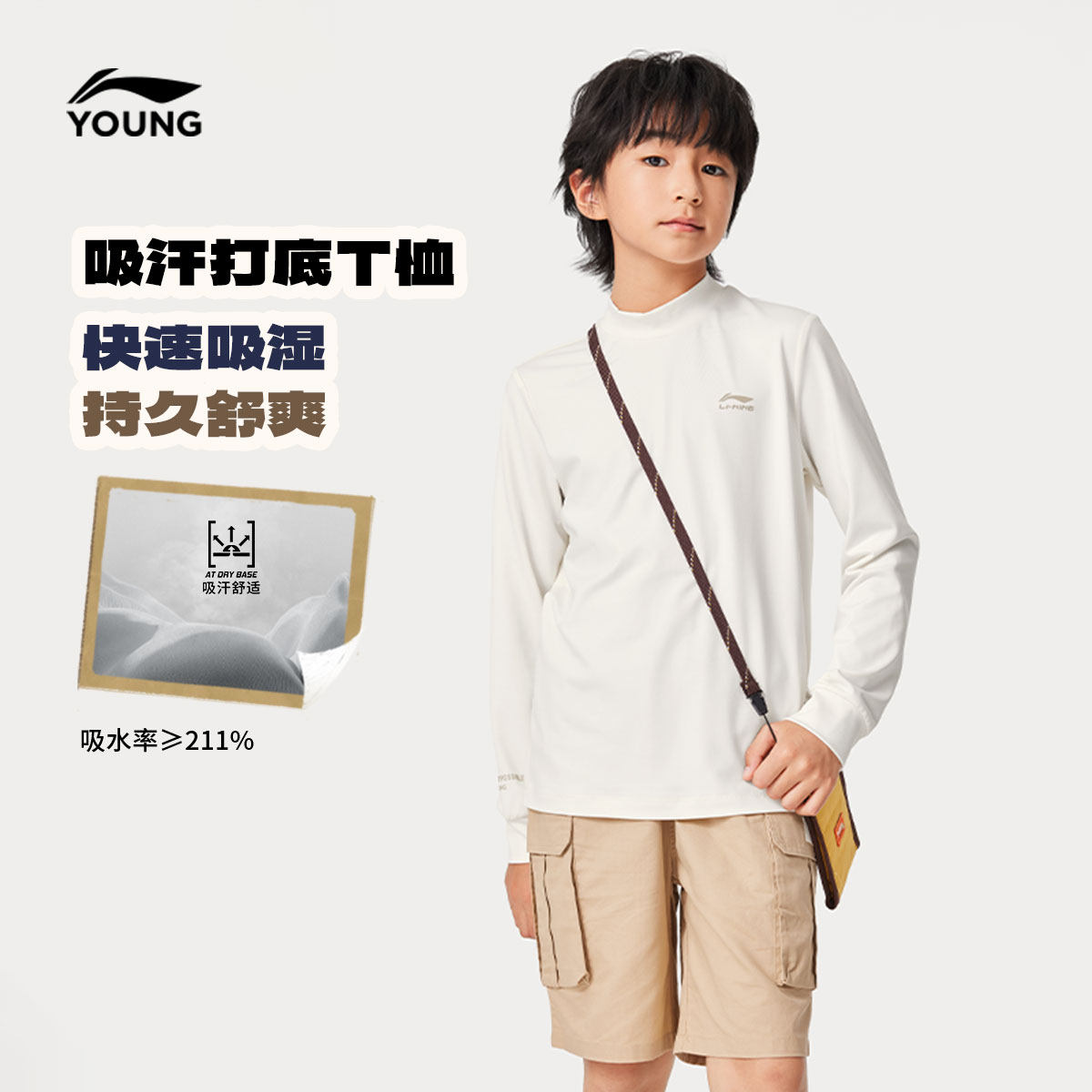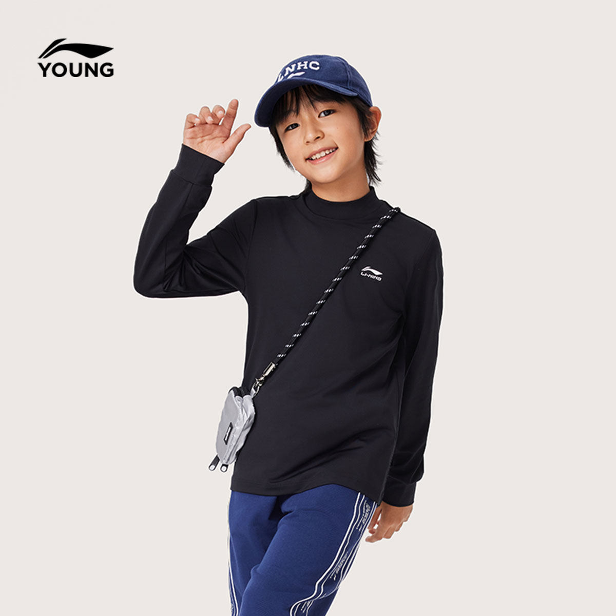 李宁儿童小高领打底衫速干衣服长袖T恤2025新款男童装秋冬款秋装