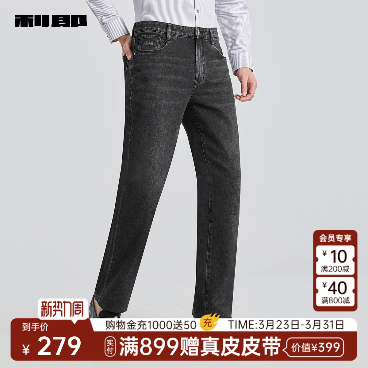 【直筒/含莱赛尔】利郎牛仔裤男士2025春夏新款中腰水洗裤子男裤