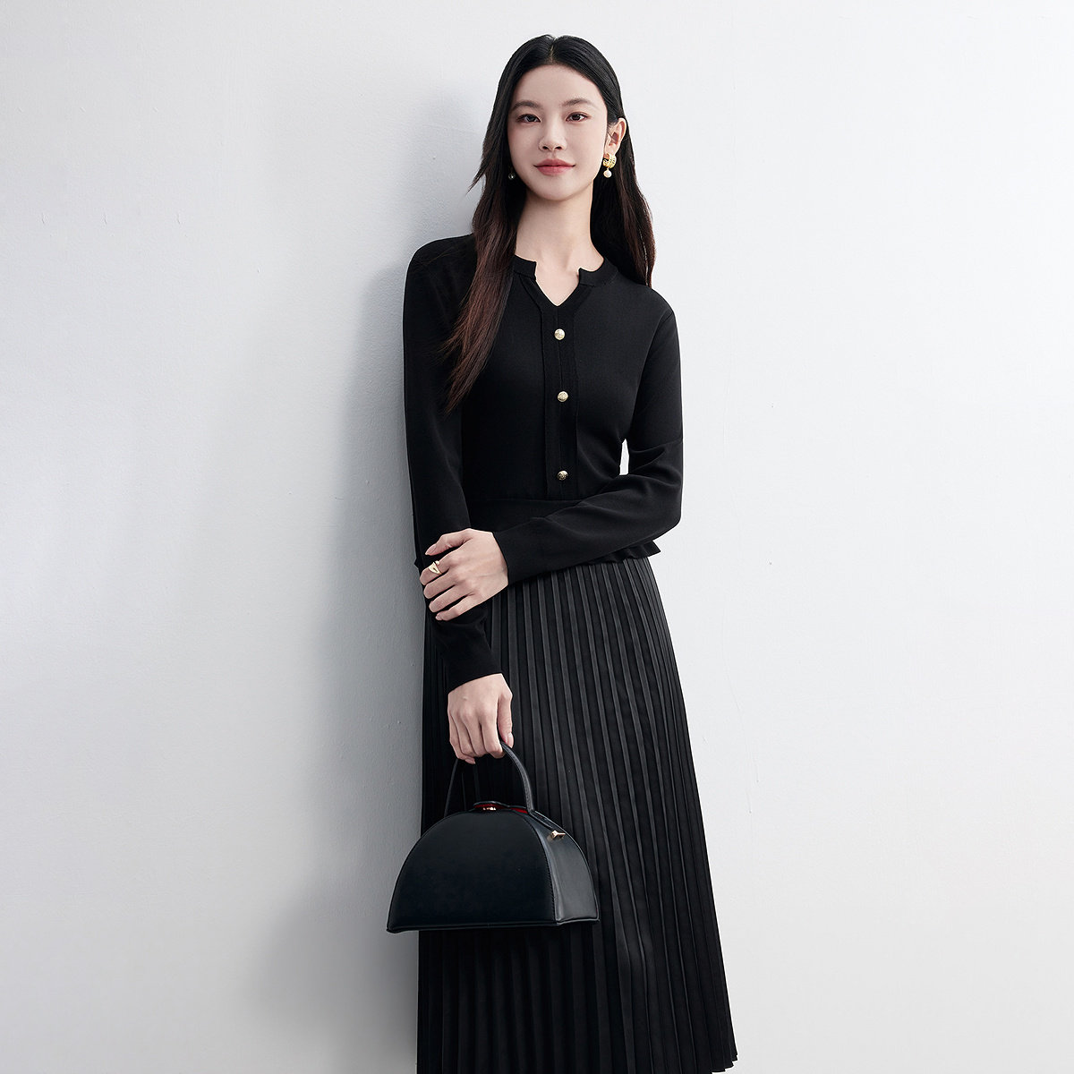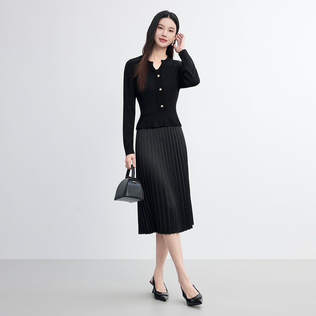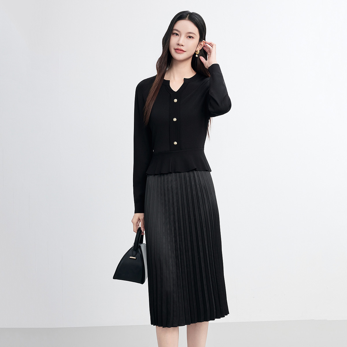 BANANA CICI2026年春季新款荷叶边V领针织衫/连衣裙