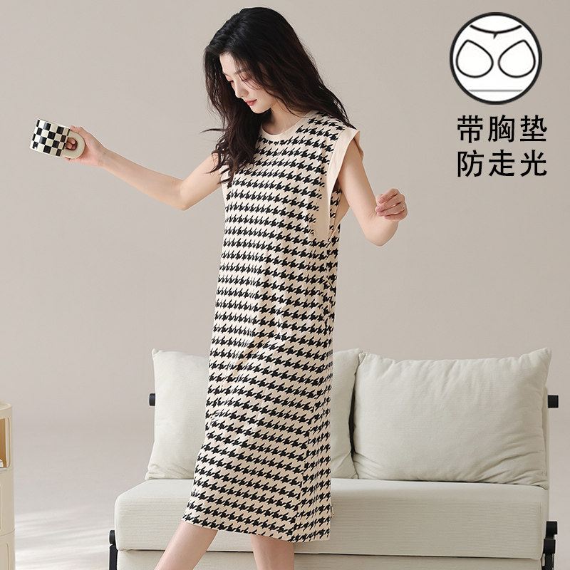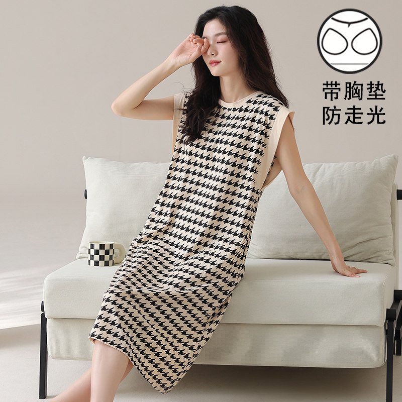 可外穿连衣裙无袖背心睡裙女款夏季宽松带胸垫睡衣坎肩薄款家居