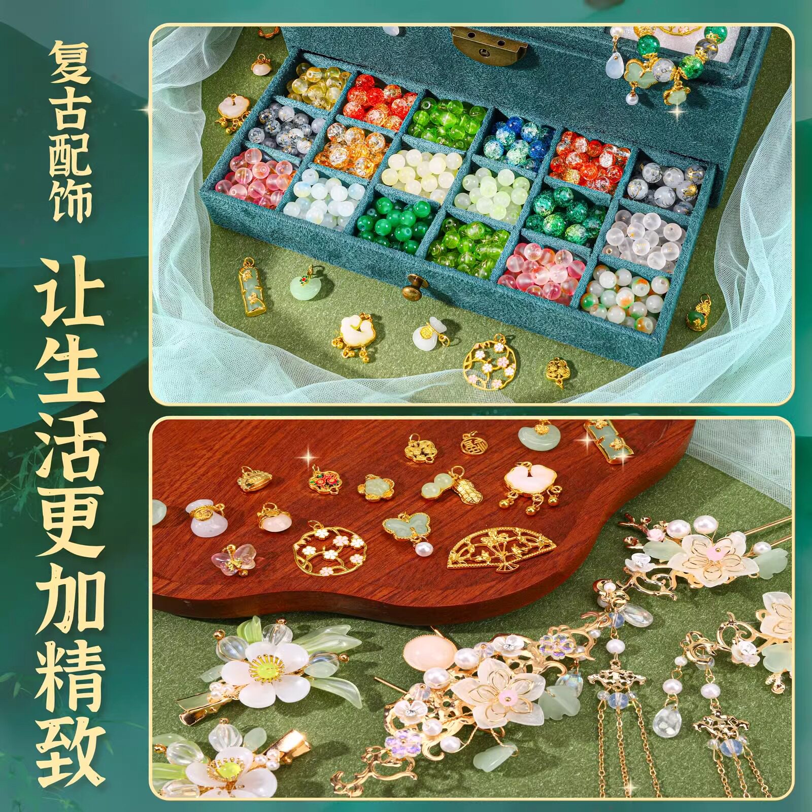 儿童手链串珠手工diy材料女孩生日礼物女童玩具古风琉璃礼盒手串9