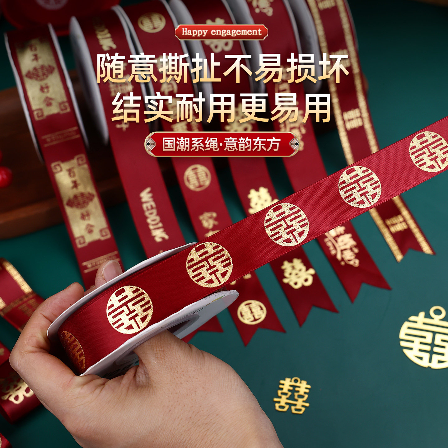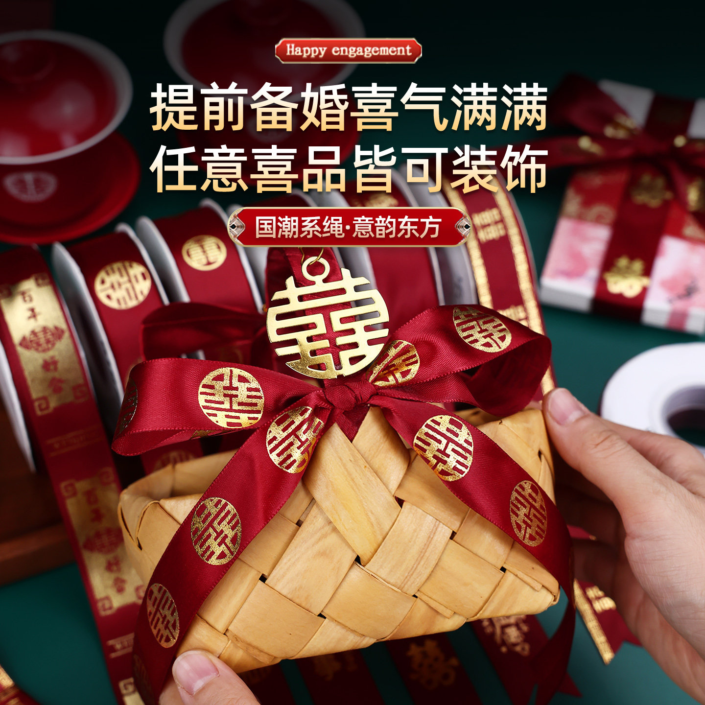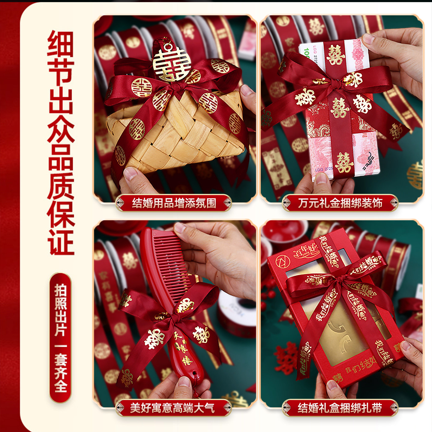 结婚绸带婚礼红色喜字丝带包装扎带捆被子绑带婚庆用品大全新婚