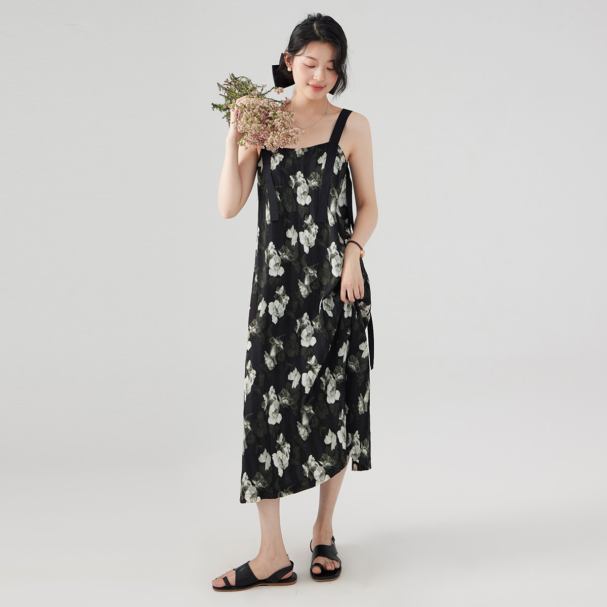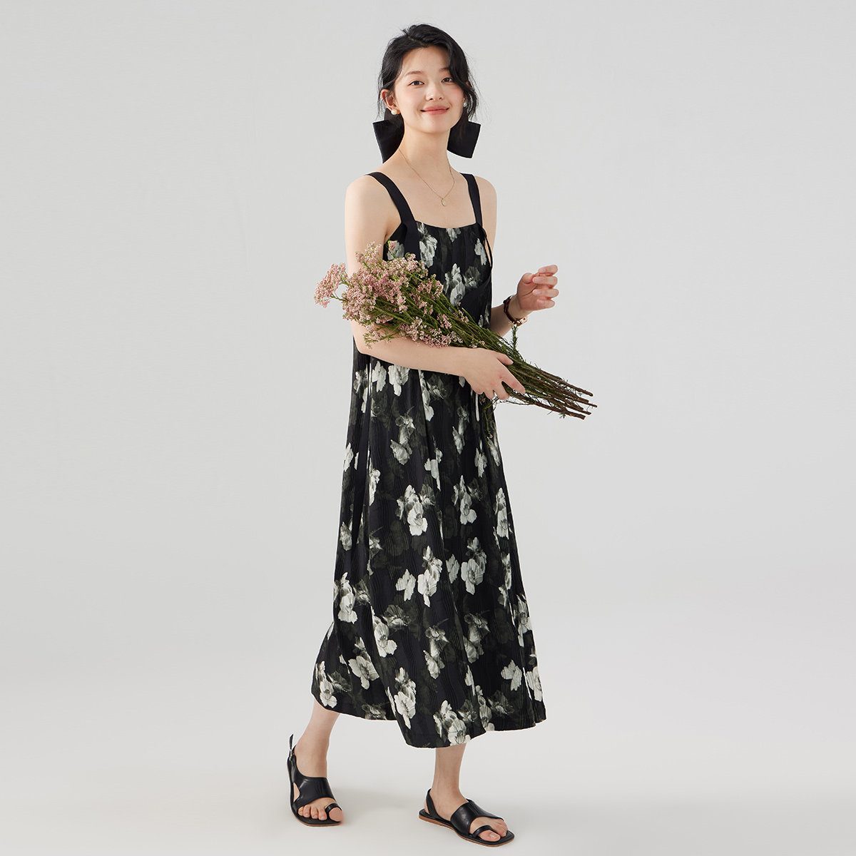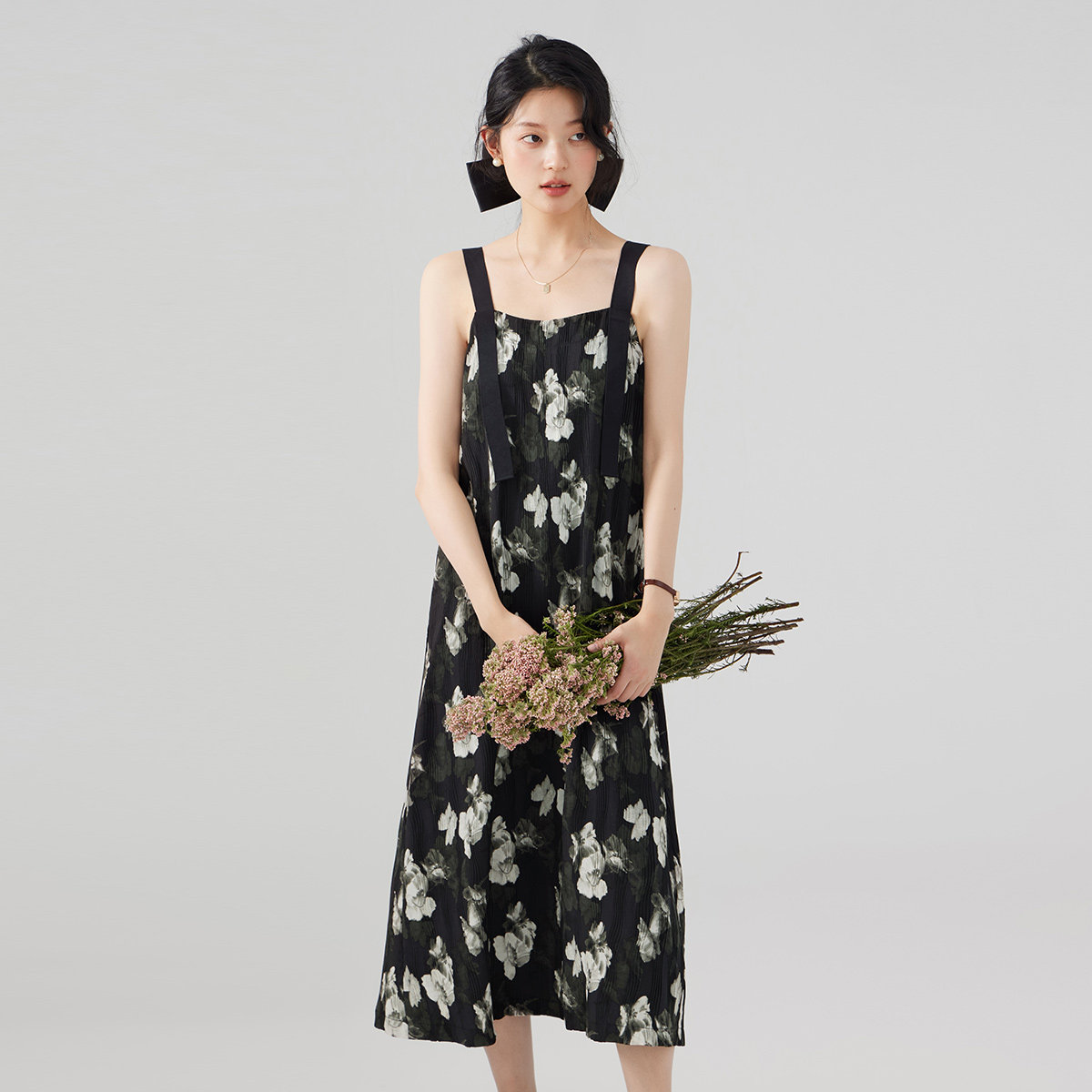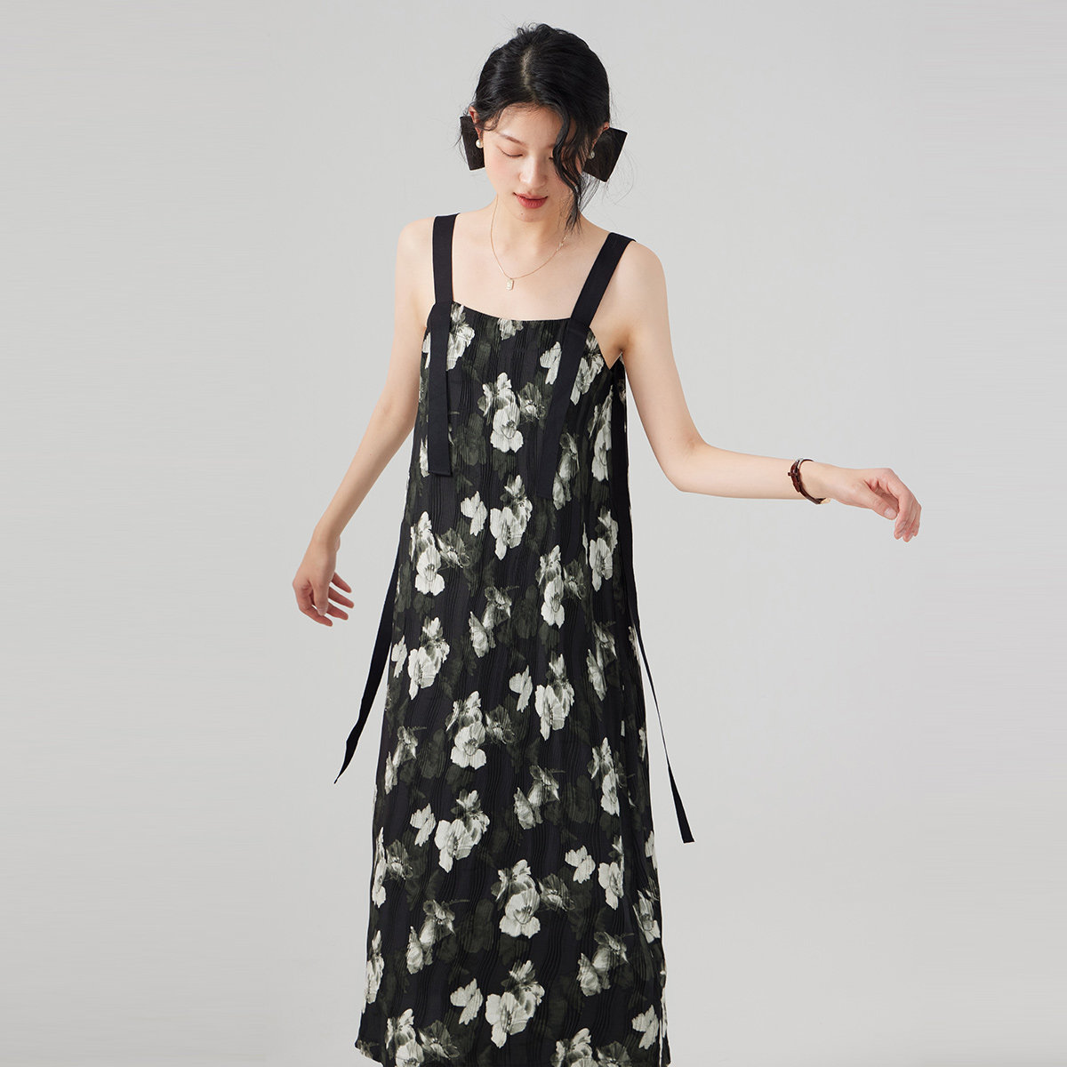 one more法式碎花连衣裙女2025新款高级感宽松拼接吊带裙度假裙子
