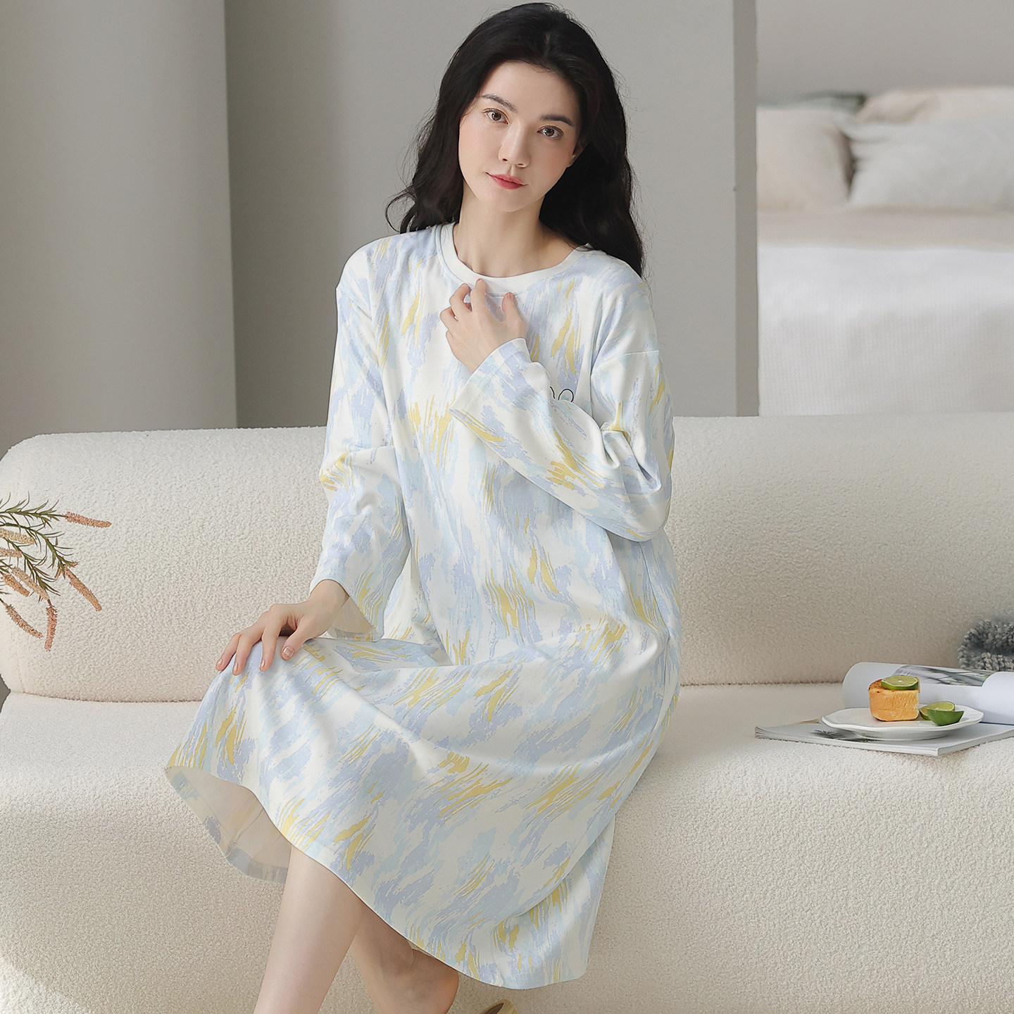 蕉内棉棉300Sleep女士睡裙带胸垫棉可外穿带杯长袖家居服吊带裙