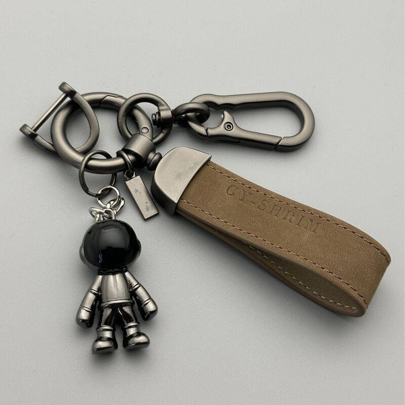 宇航员钥匙扣金属挂件男汽车钥匙链钥匙圈个性创意高档皮绳钥匙链
