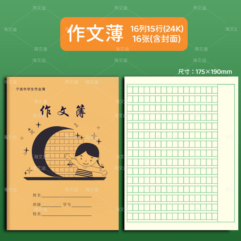 宁波市中小学生练习作业本簿36K加厚牛皮作业本拼田拼音田字方格本簿24k数学练习外英语作文16k大作文图画簿